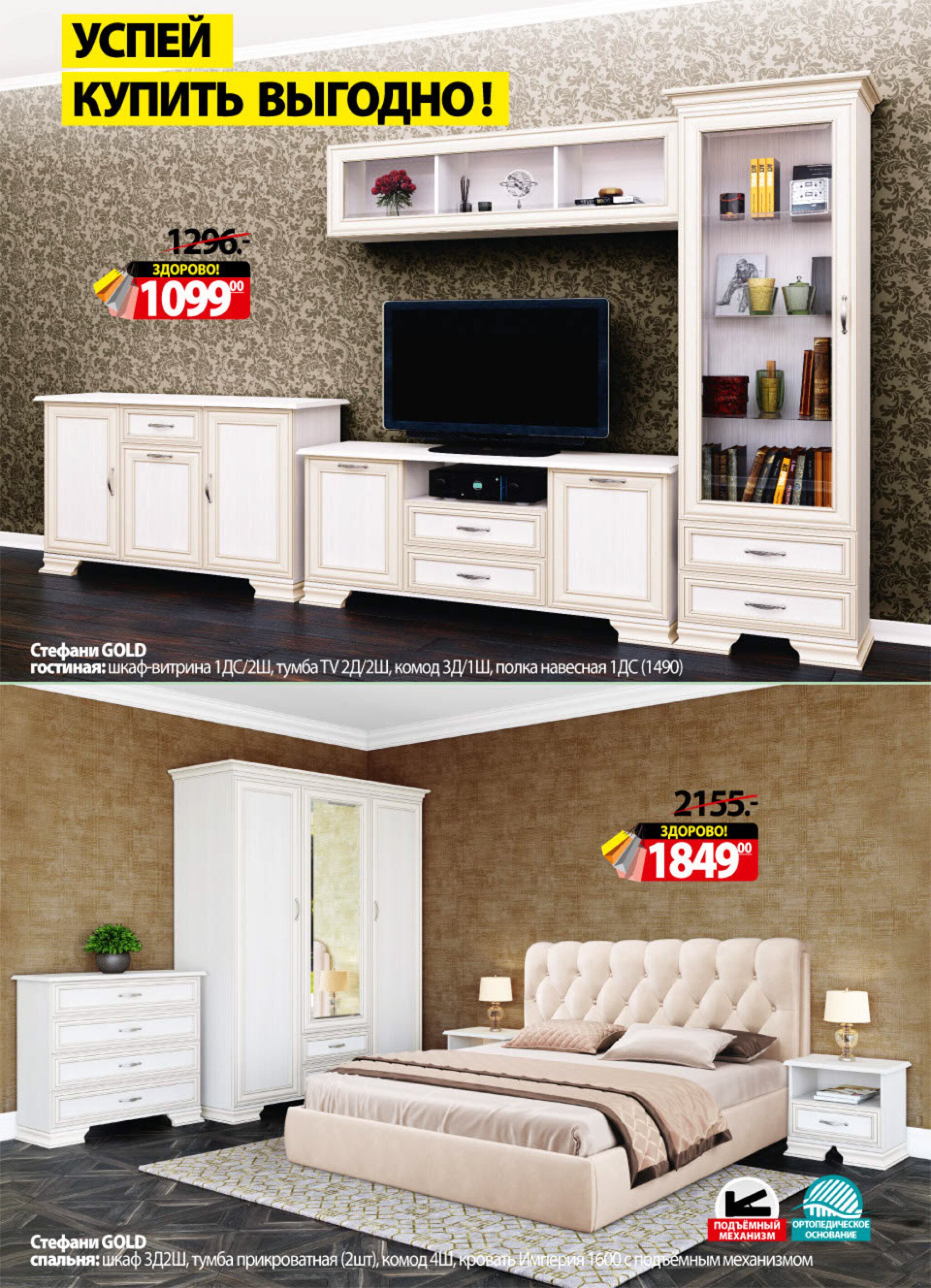 Тумба «Стефани Gold» 2д/1дс/1ш