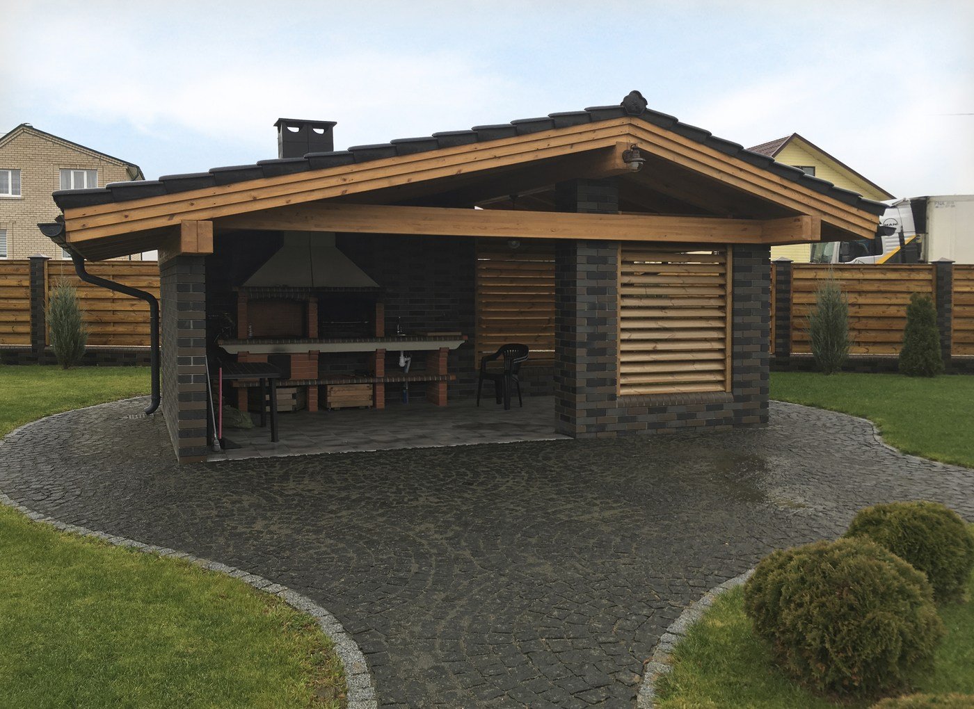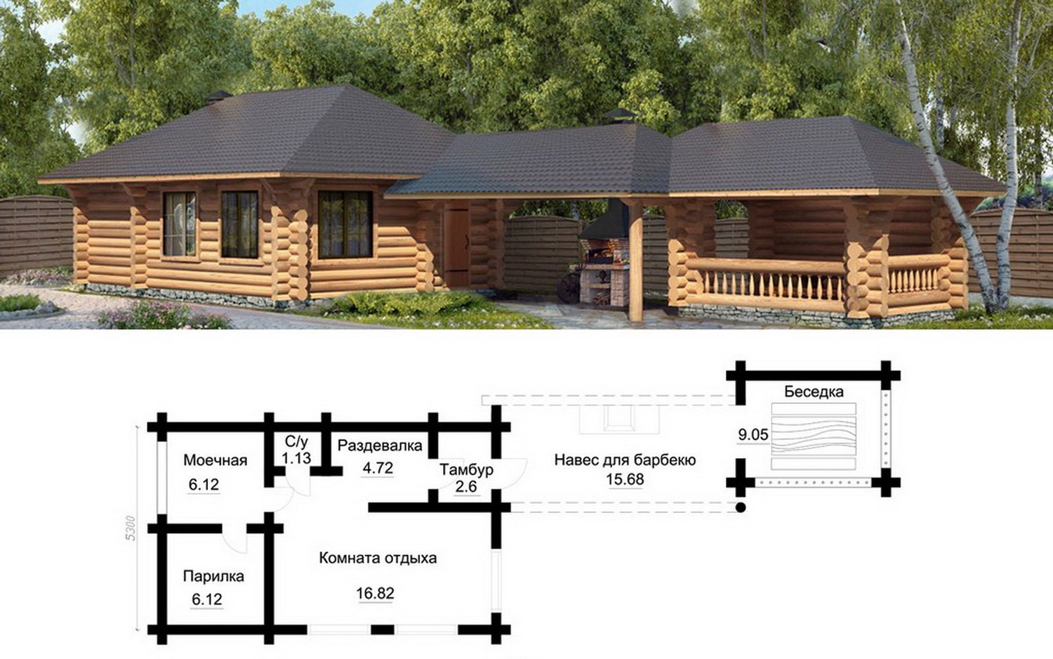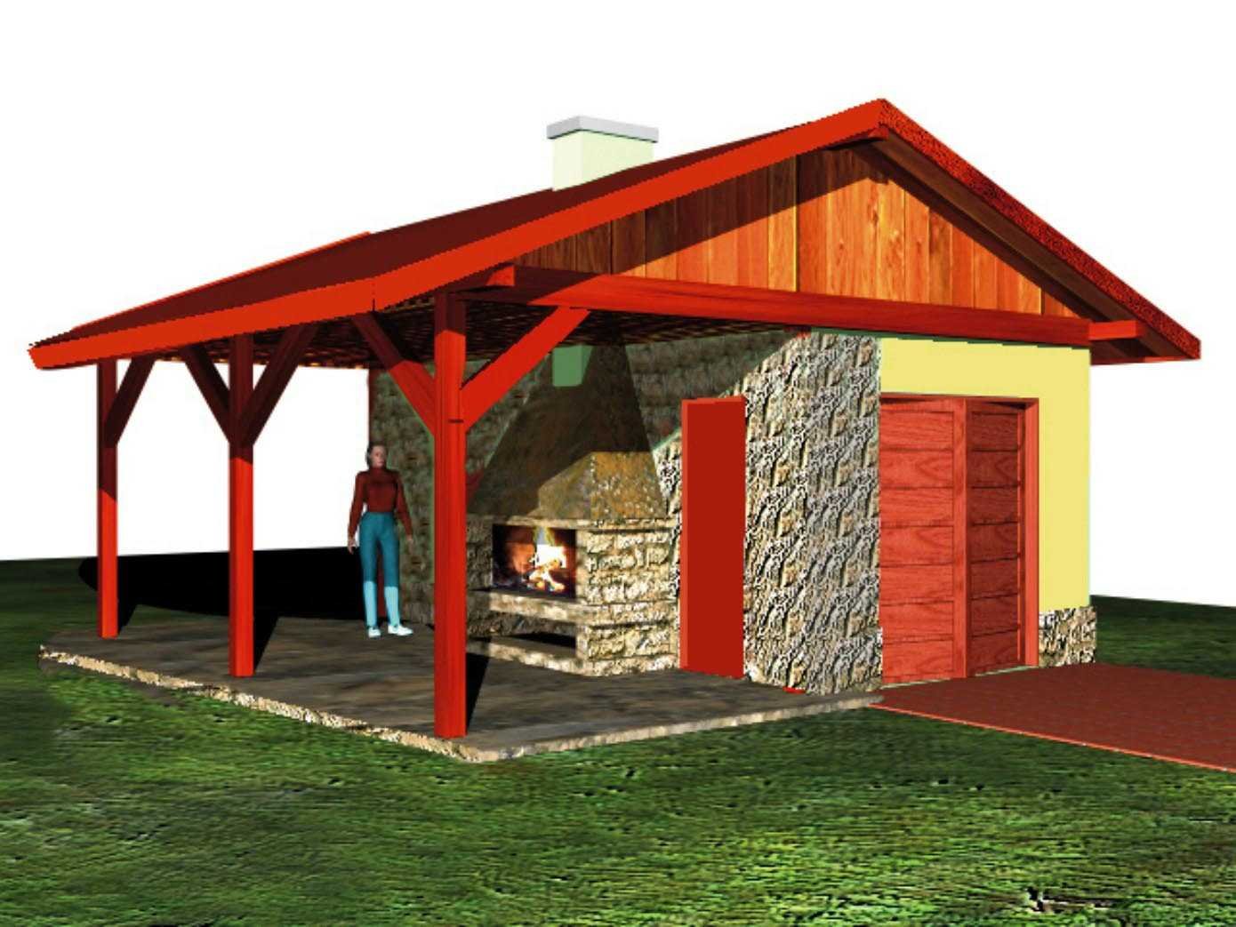 Баня с беседкой и барбекю под односкатной крышей проекты