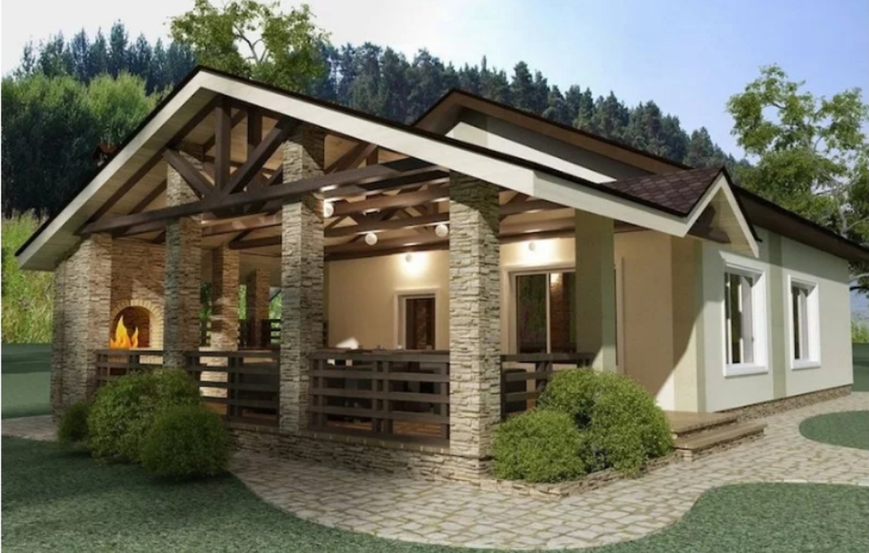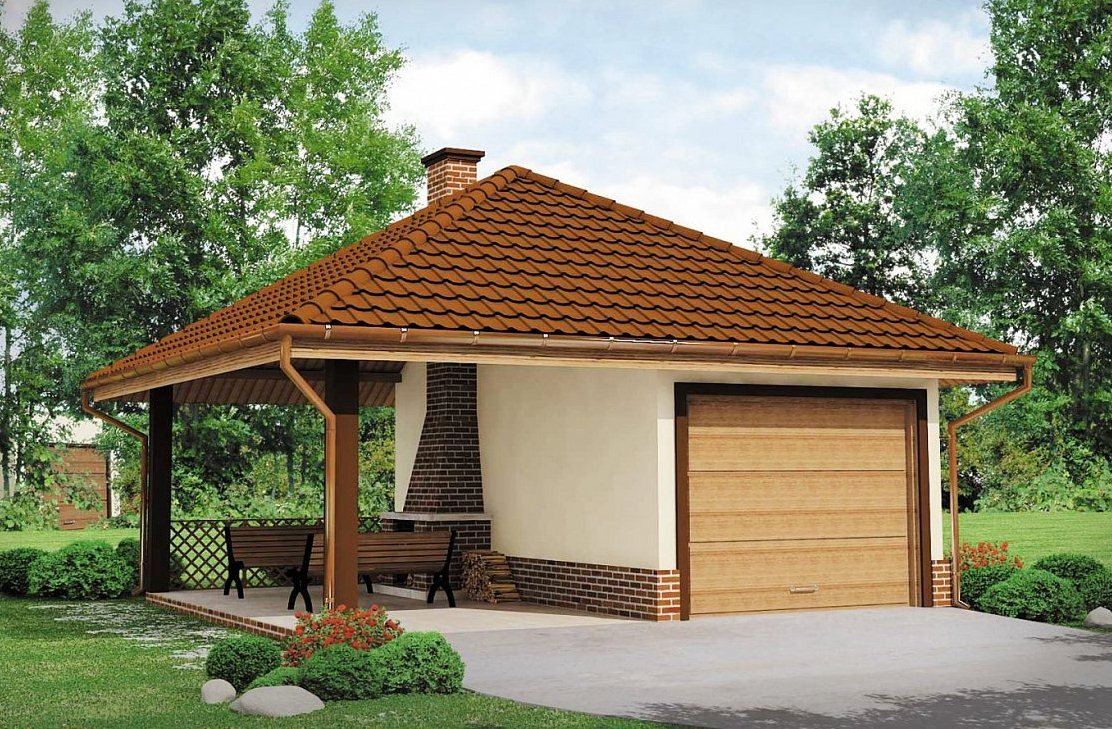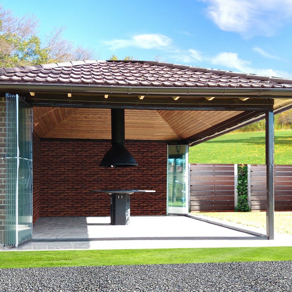 Баня с беседкой и барбекю под односкатной крышей проекты
