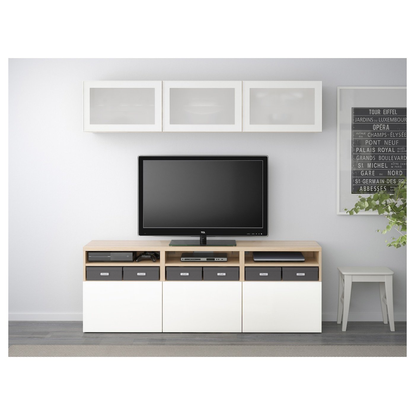 Шкаф для ТВ БЕСТО ikea беленый дуб