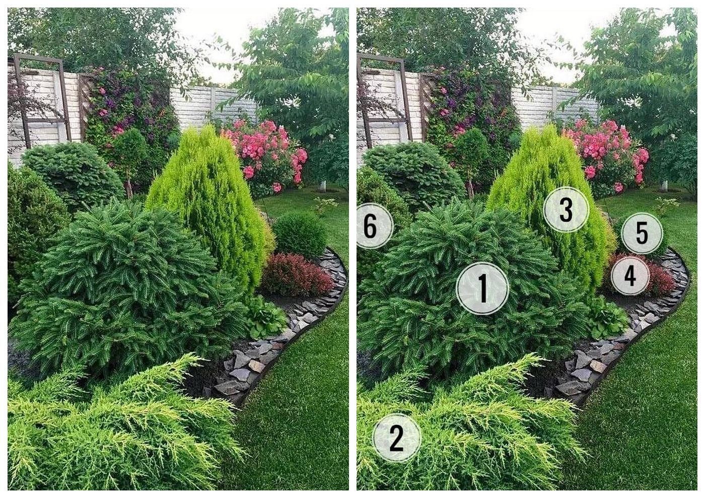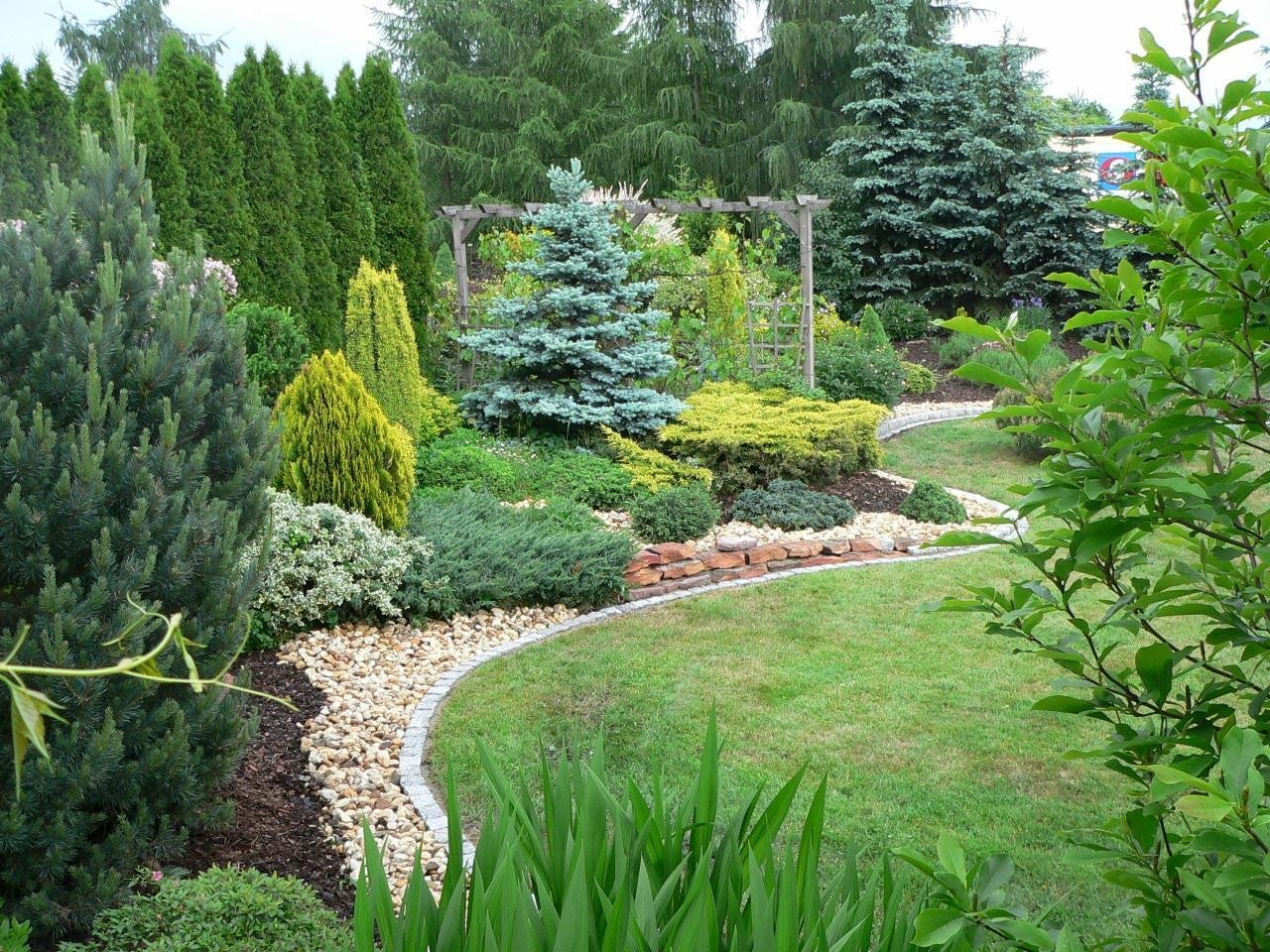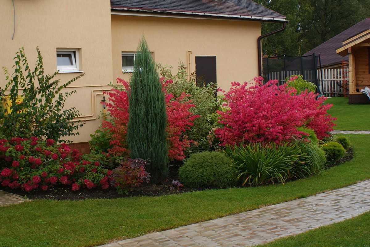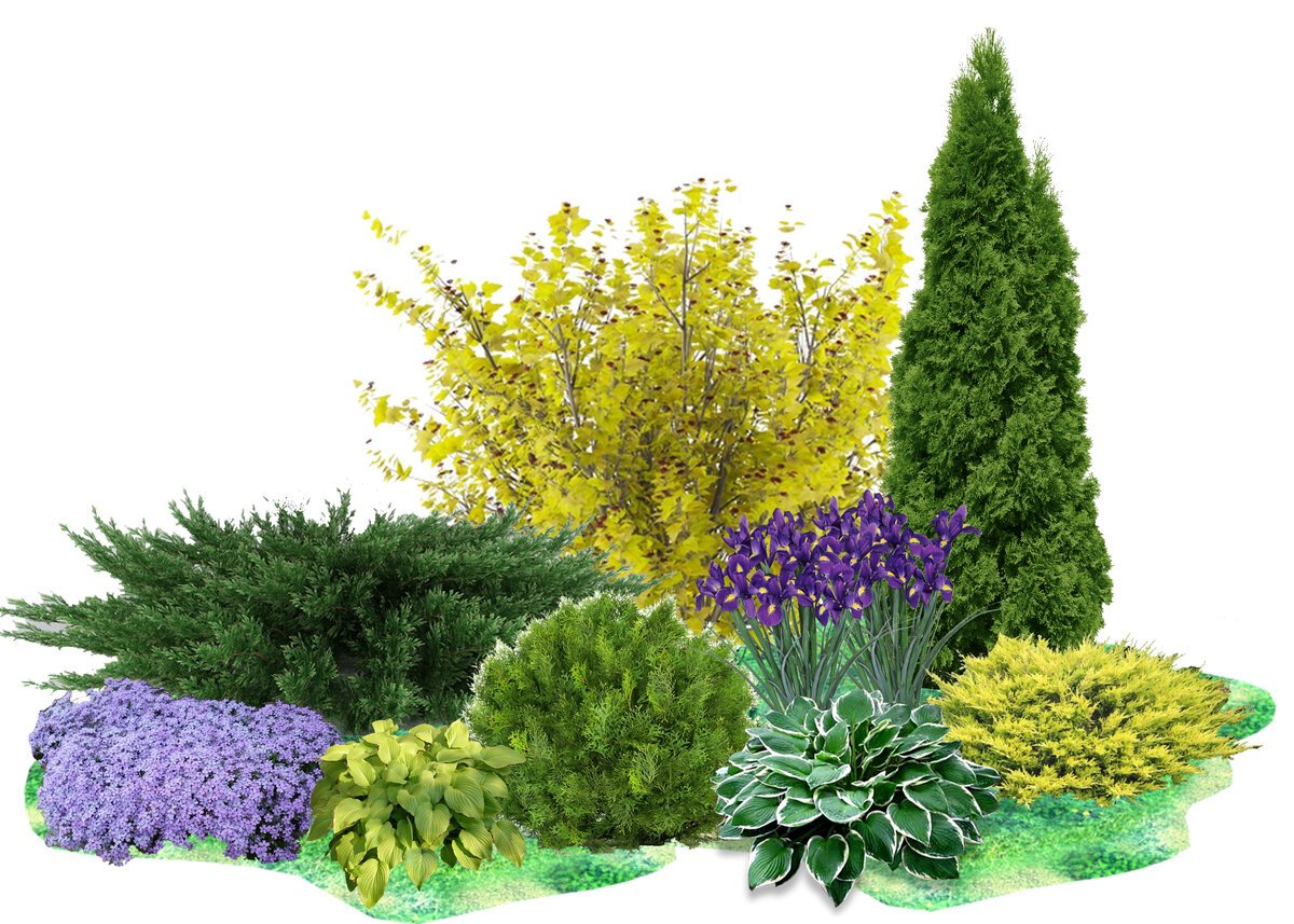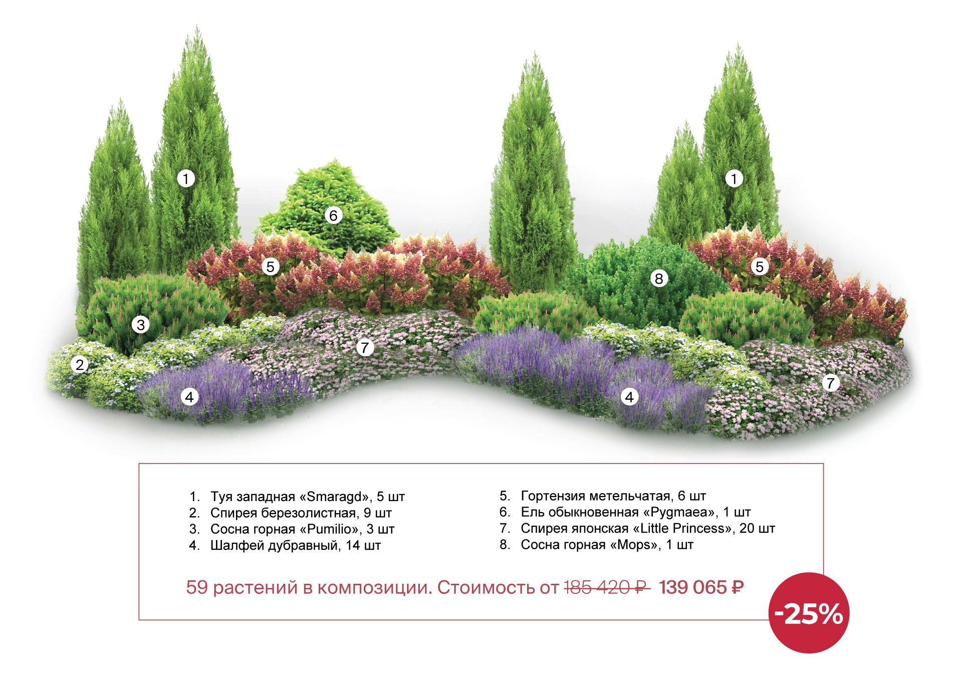 Миксбордер из хвойных и кустарников схемы вдоль забора
