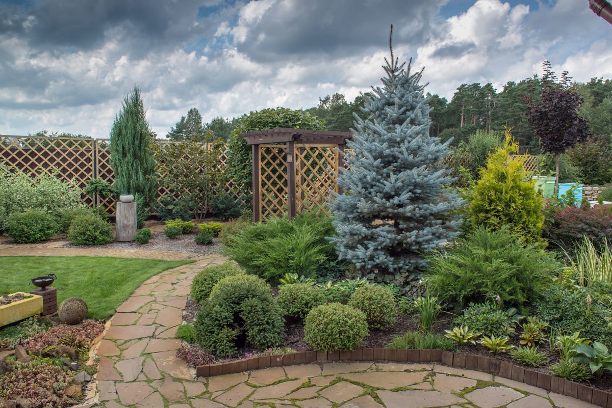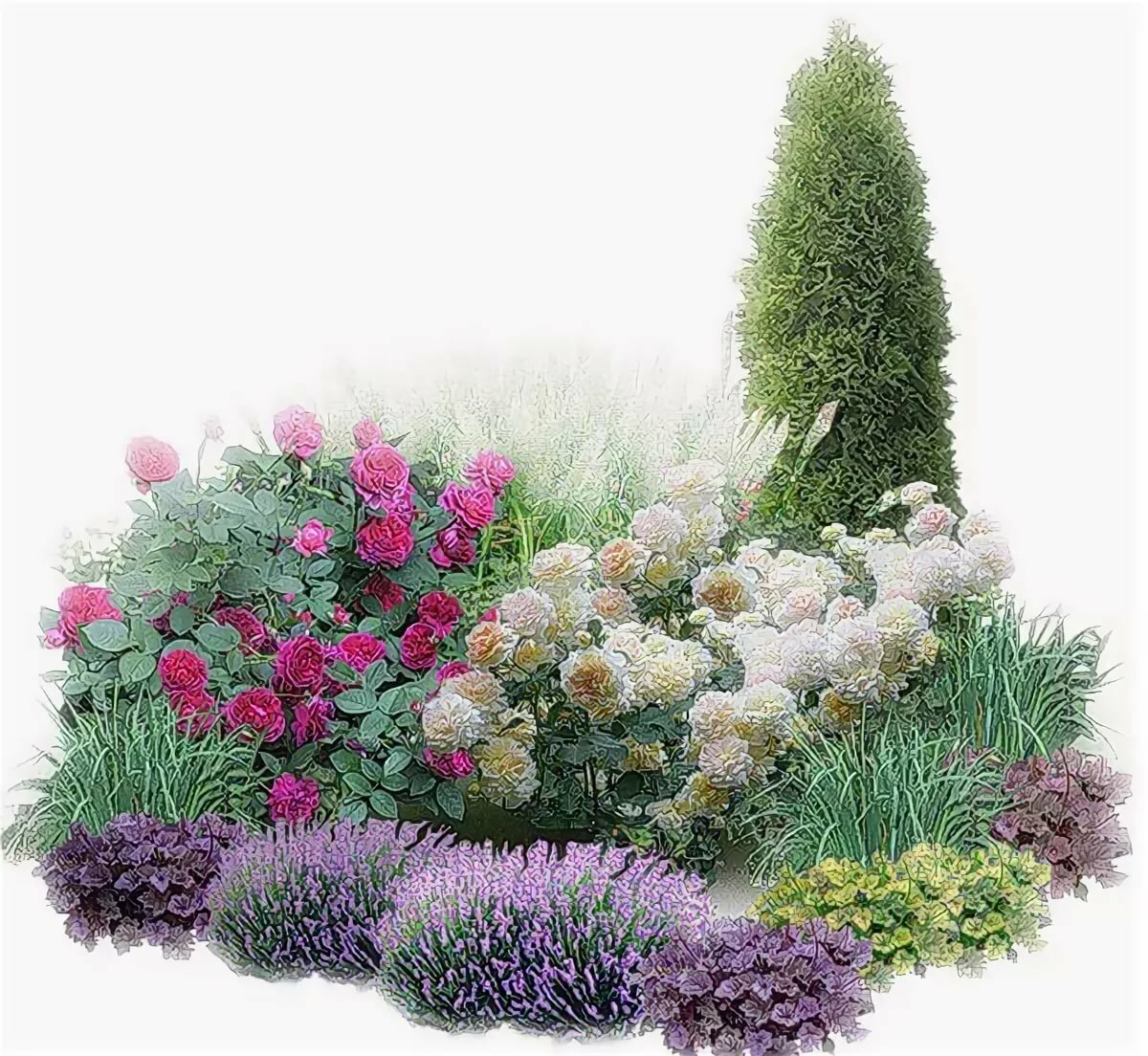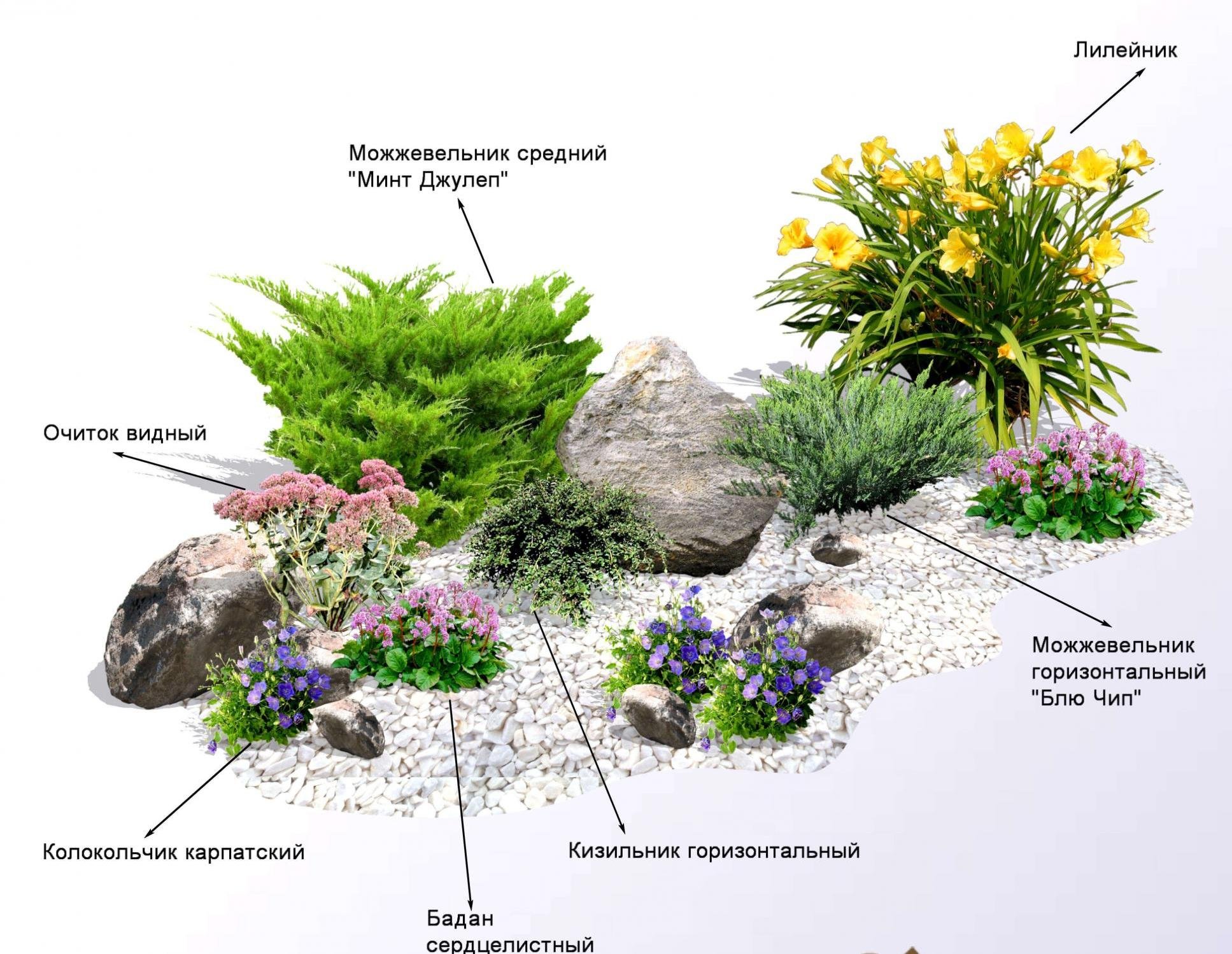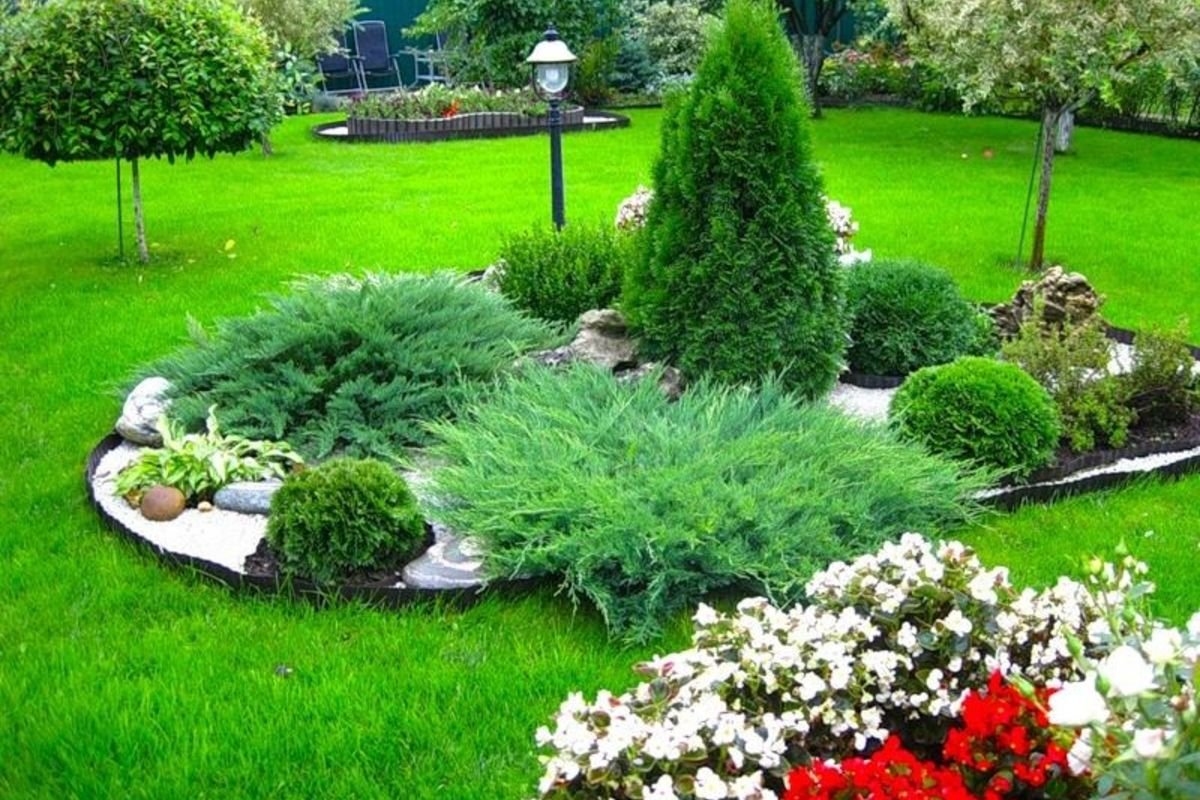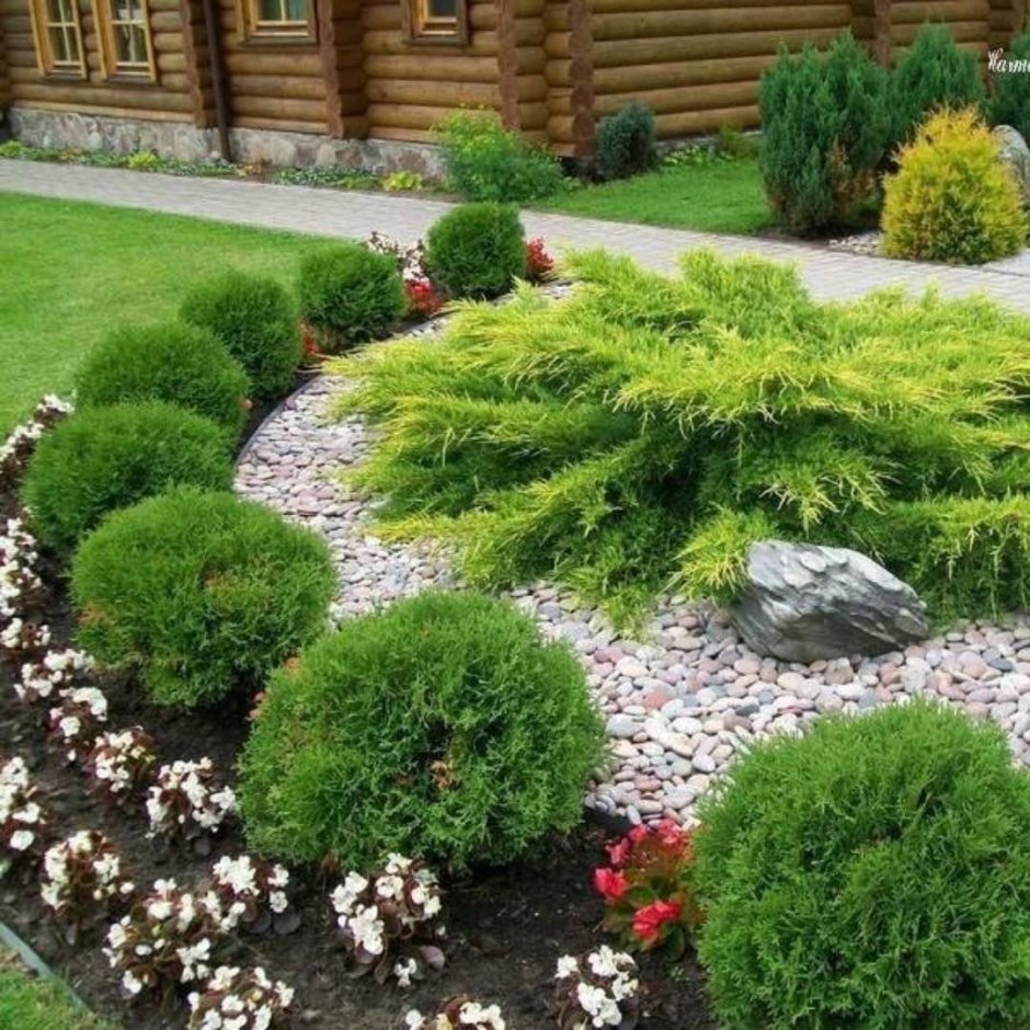 Миксбордер из хвойных и кустарников схемы вдоль забора