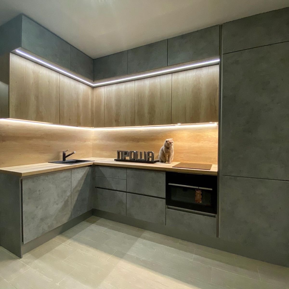 Кухня из ЛДСП Egger дуб Галифакс и бетон