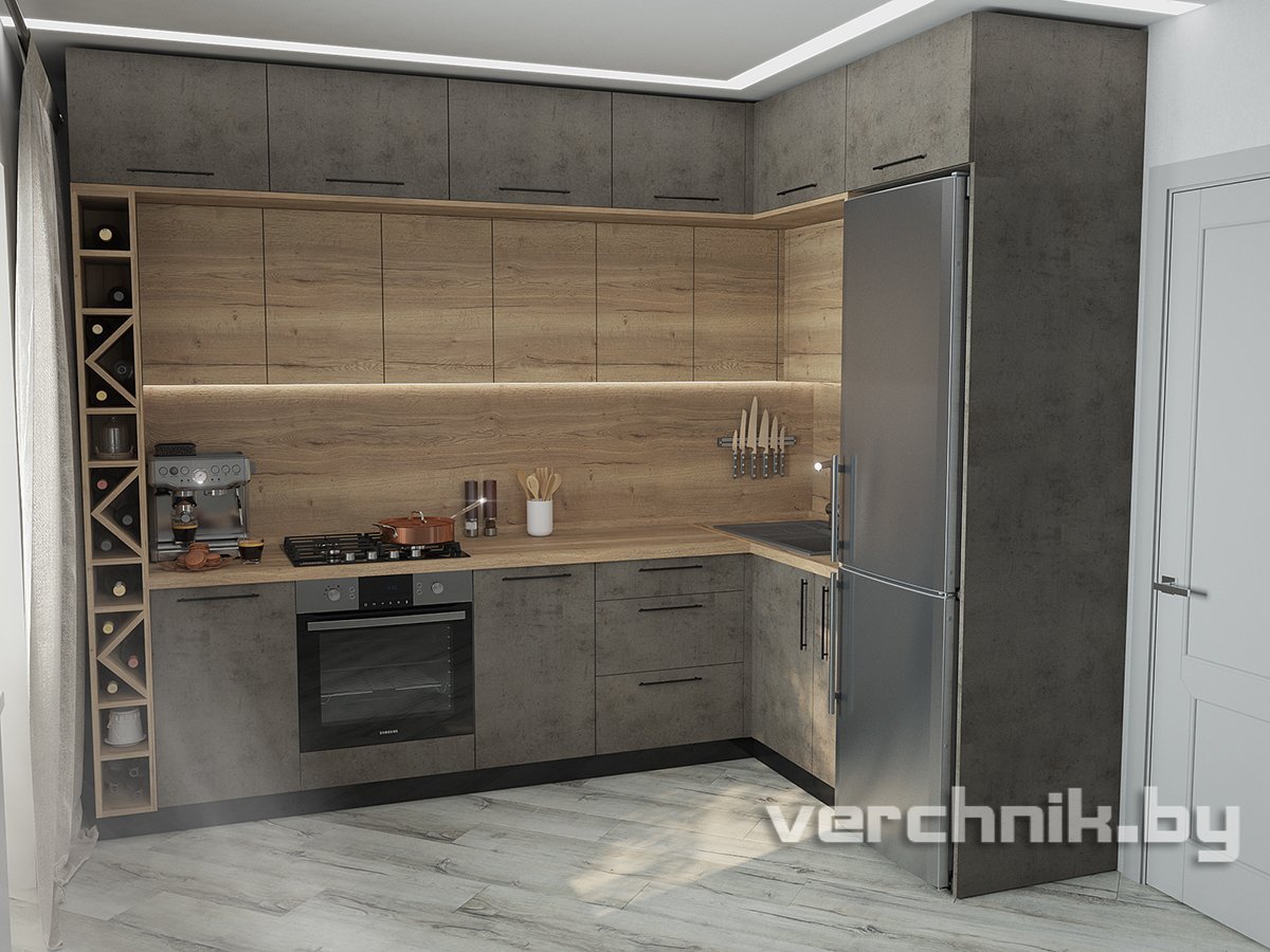 Кухня стиль лофт бетон дуб Вотан