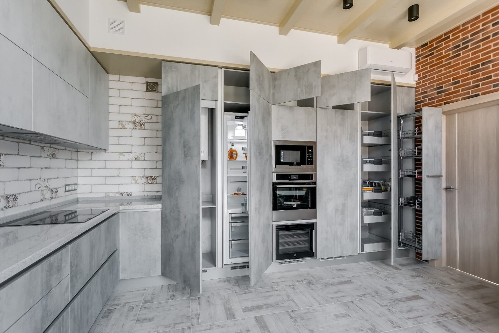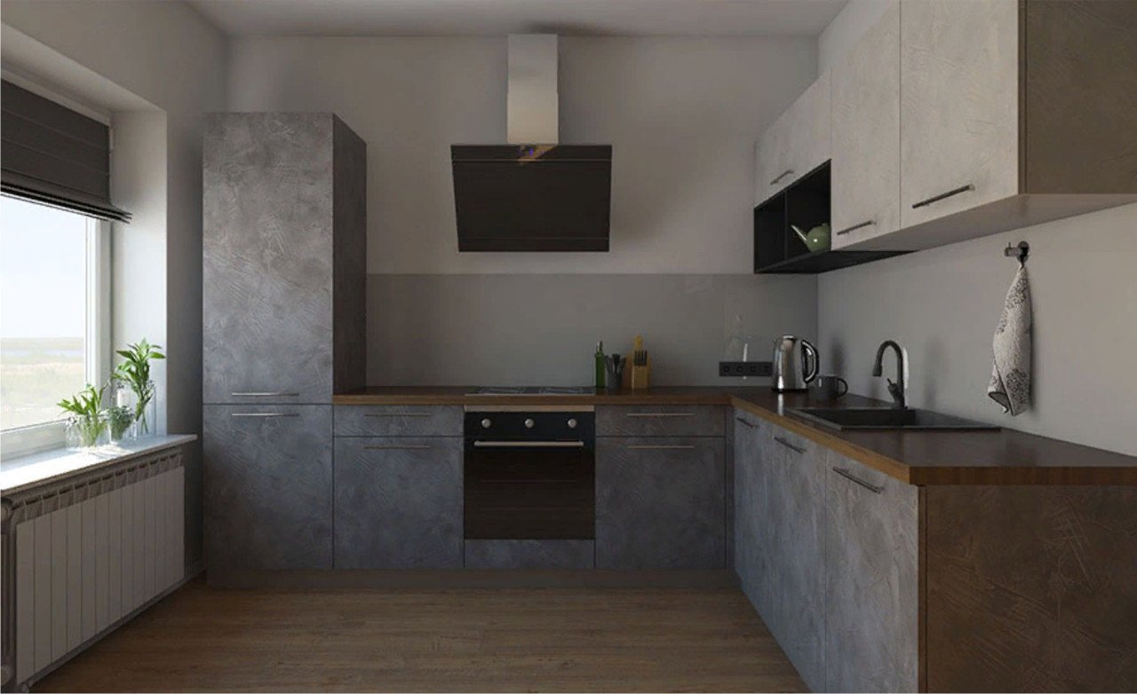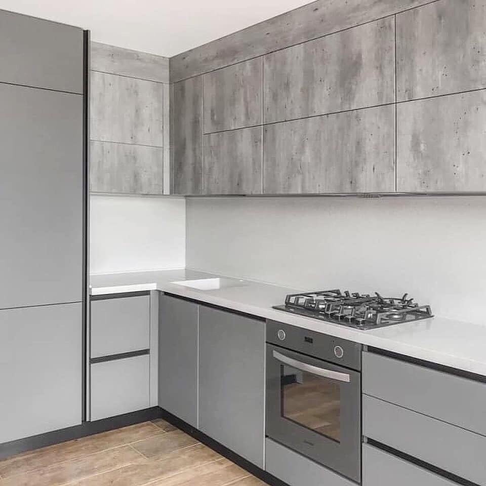 Серая кухня под цемент