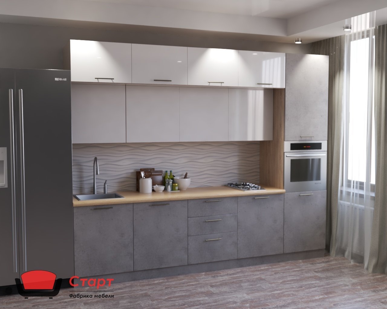 Кухня в цвете бетон Чикаго