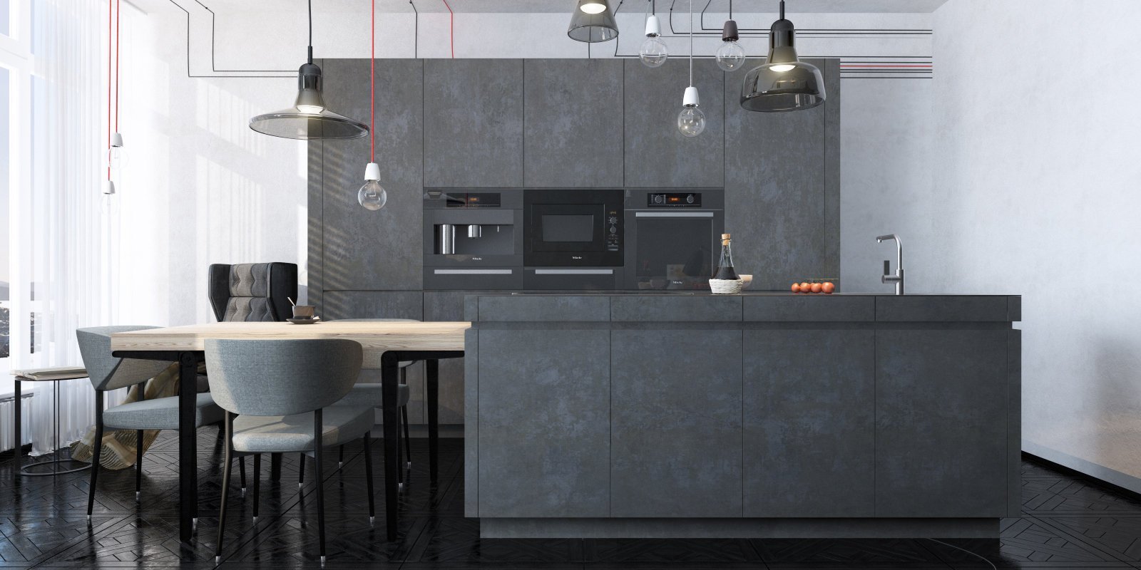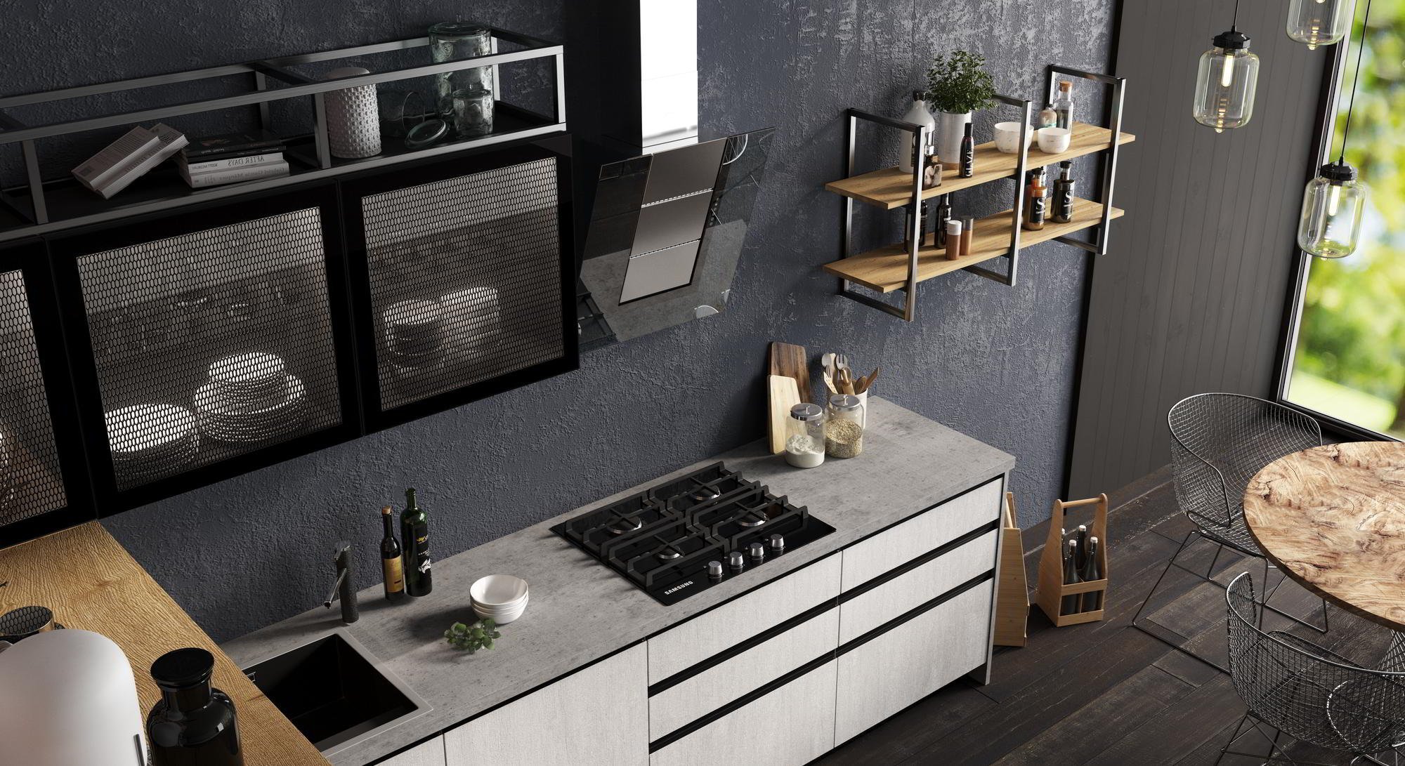Бетон лофт графит кухня