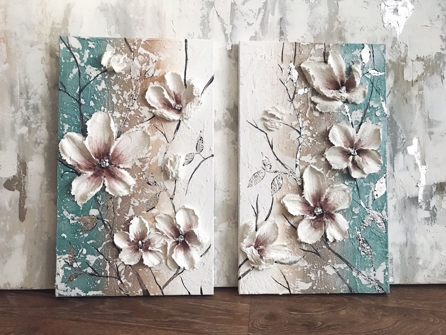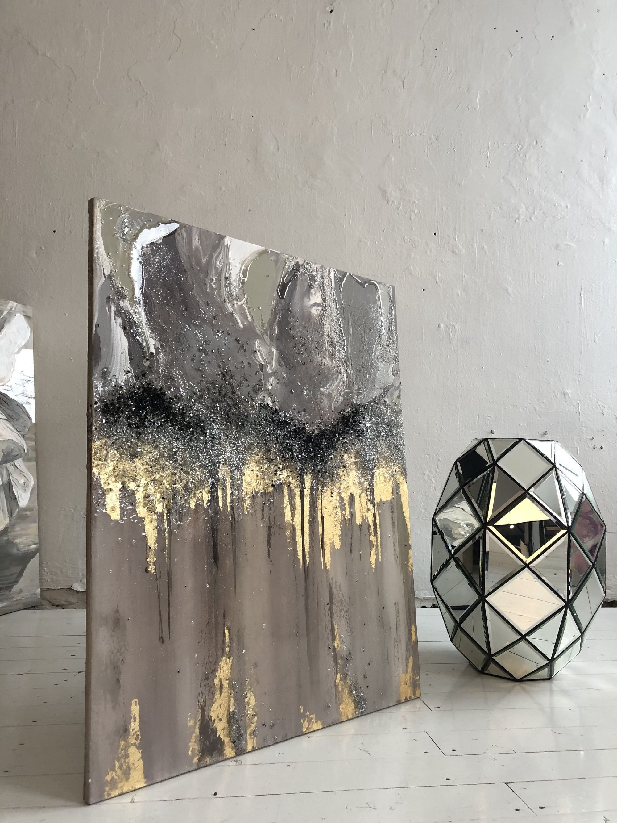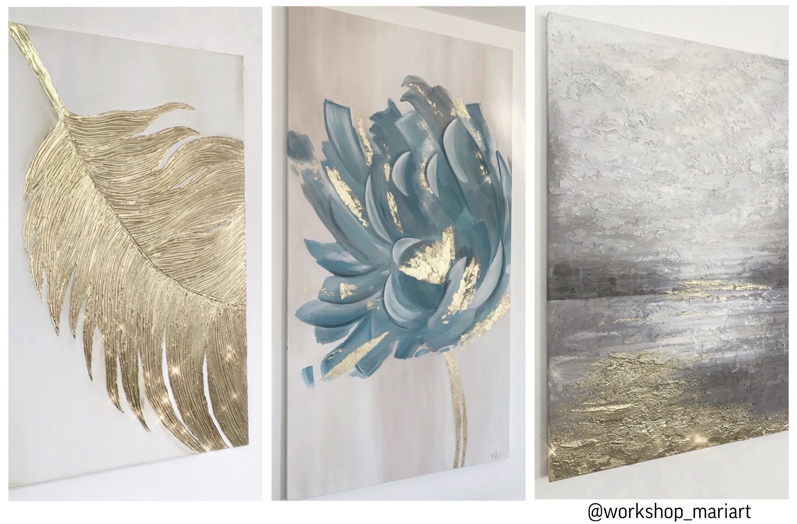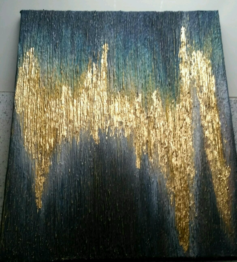 Комментируют Интерьерная картина с поталью и текстурной пастой: