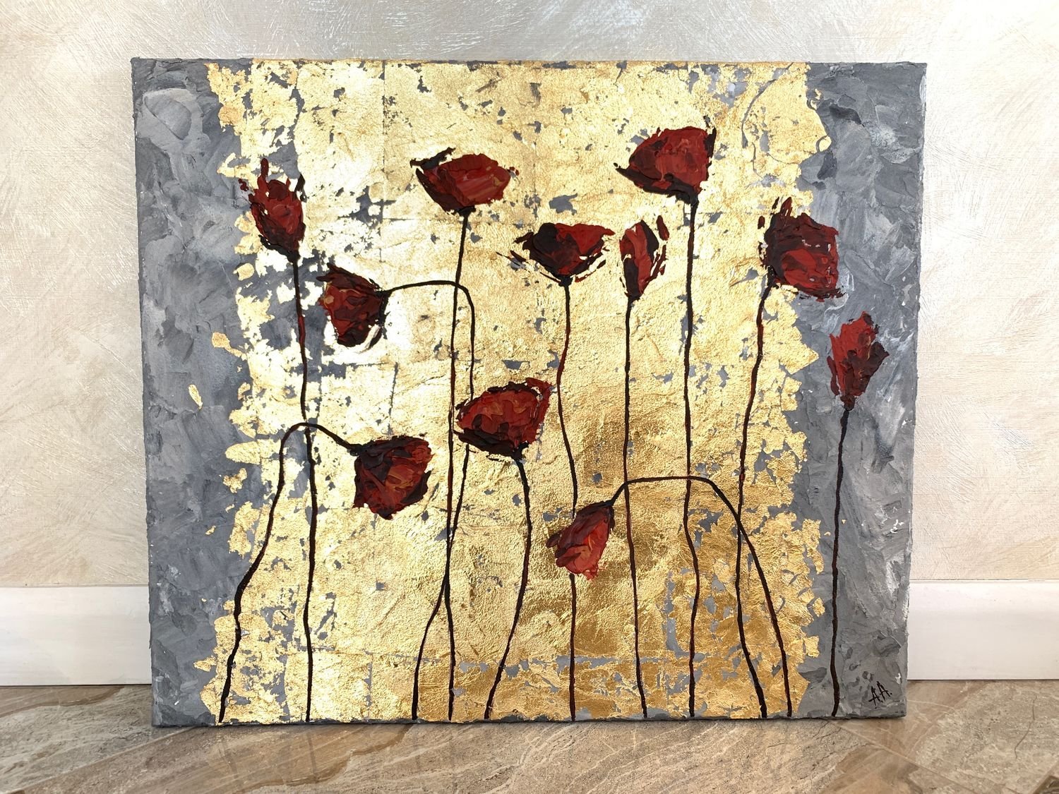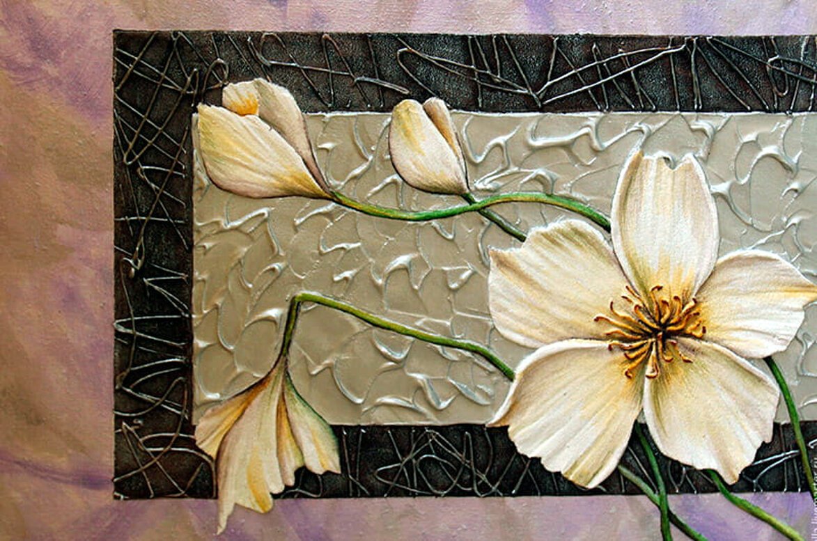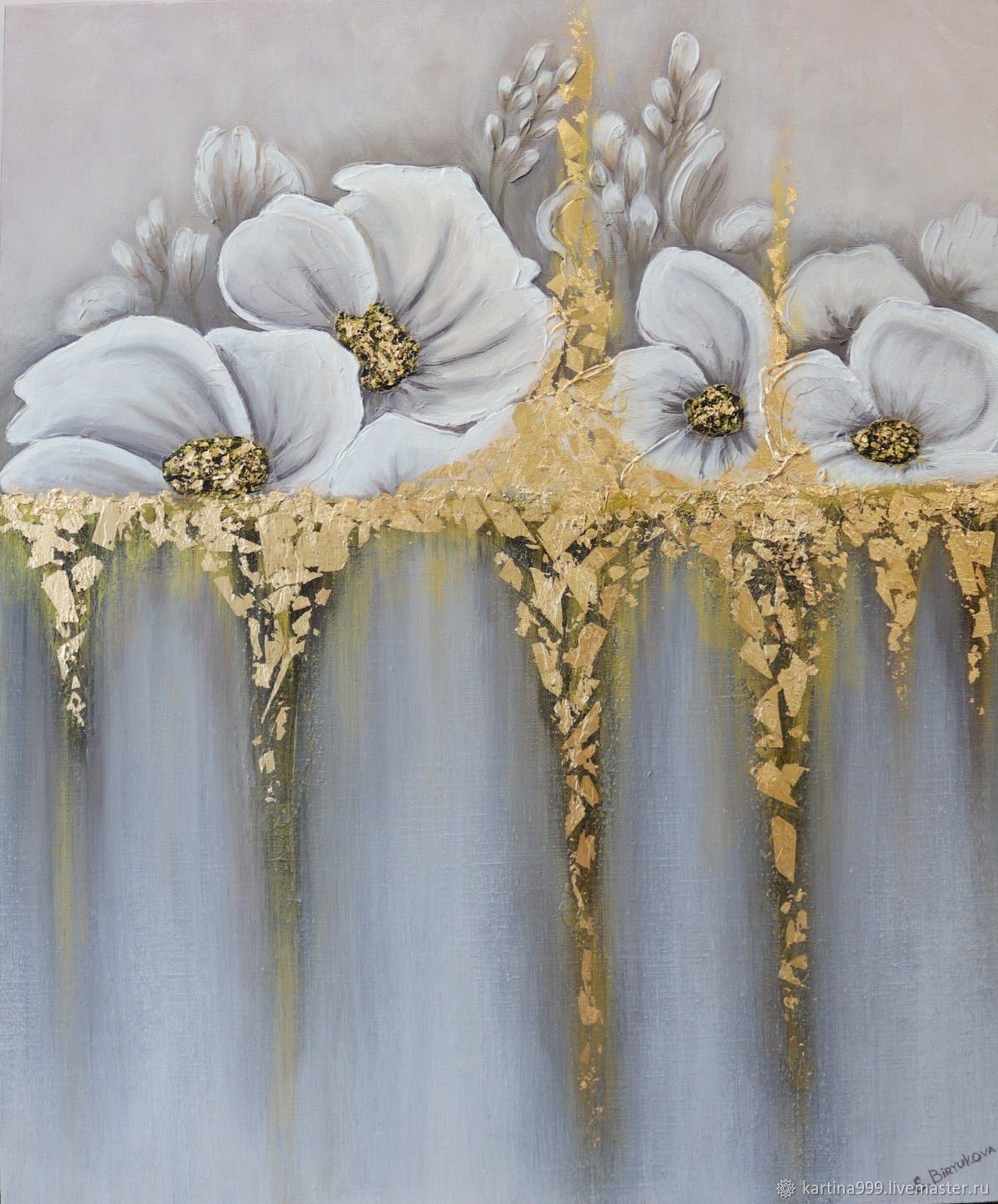 Комментируют Интерьерная картина с поталью и текстурной пастой: