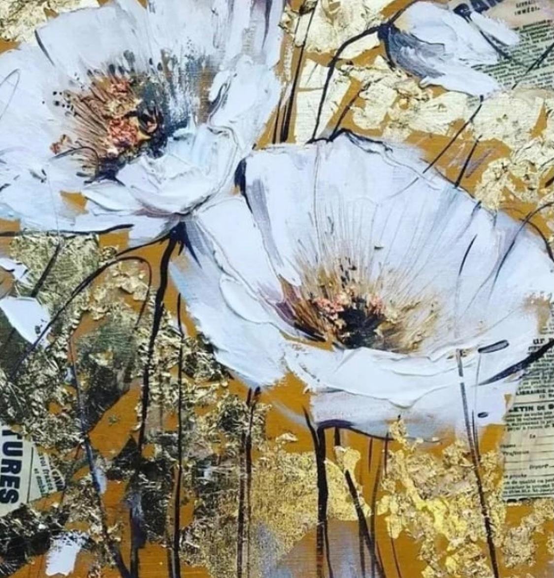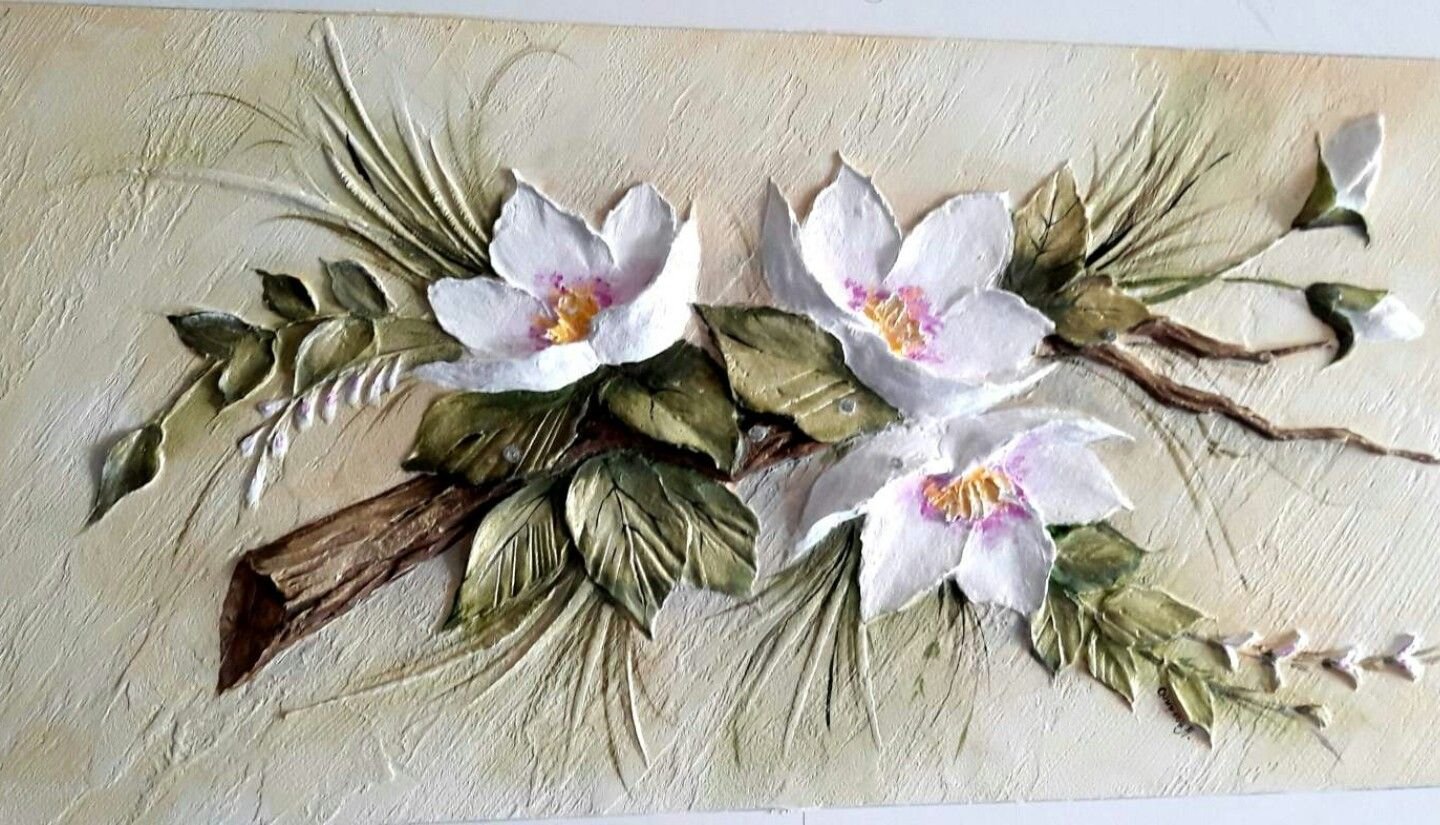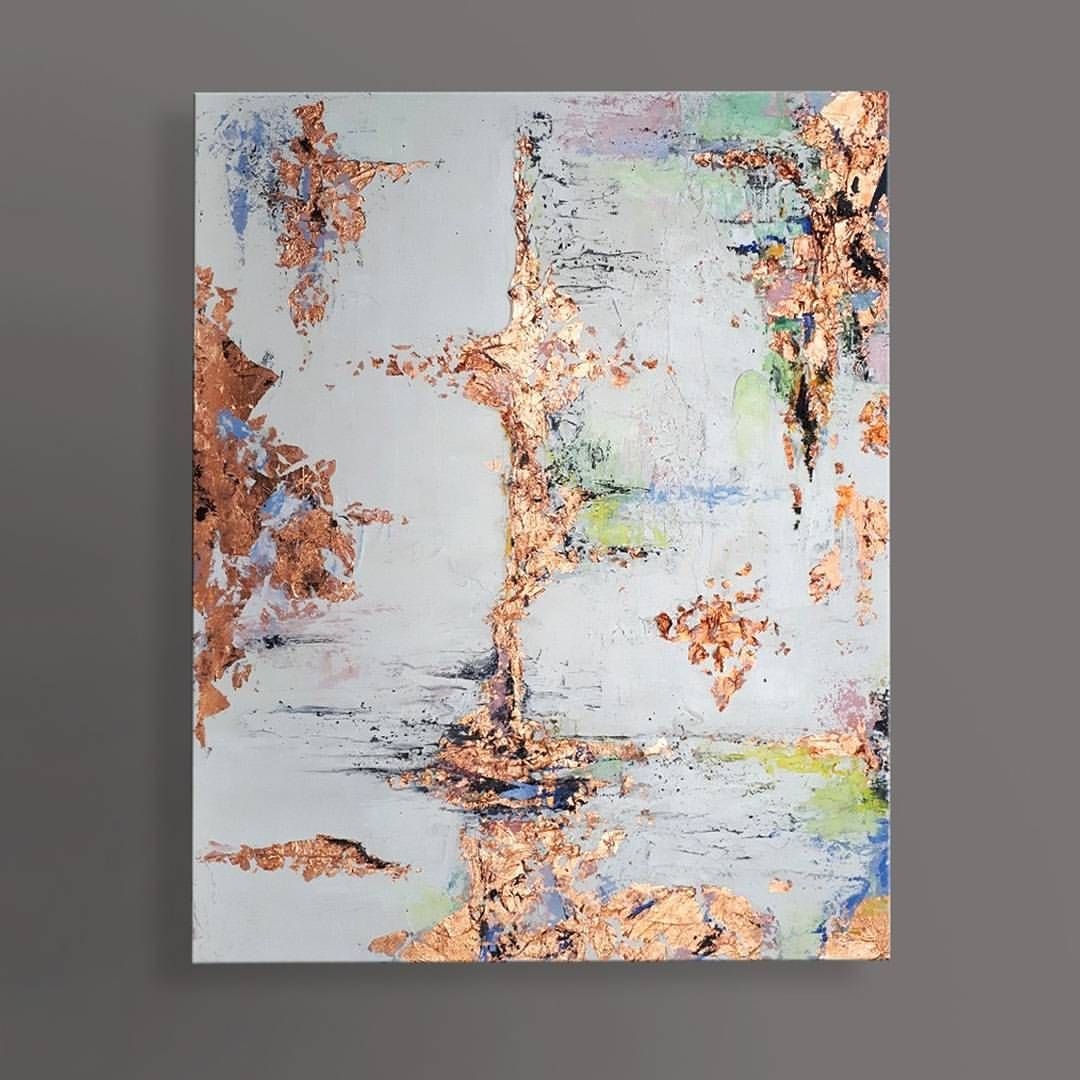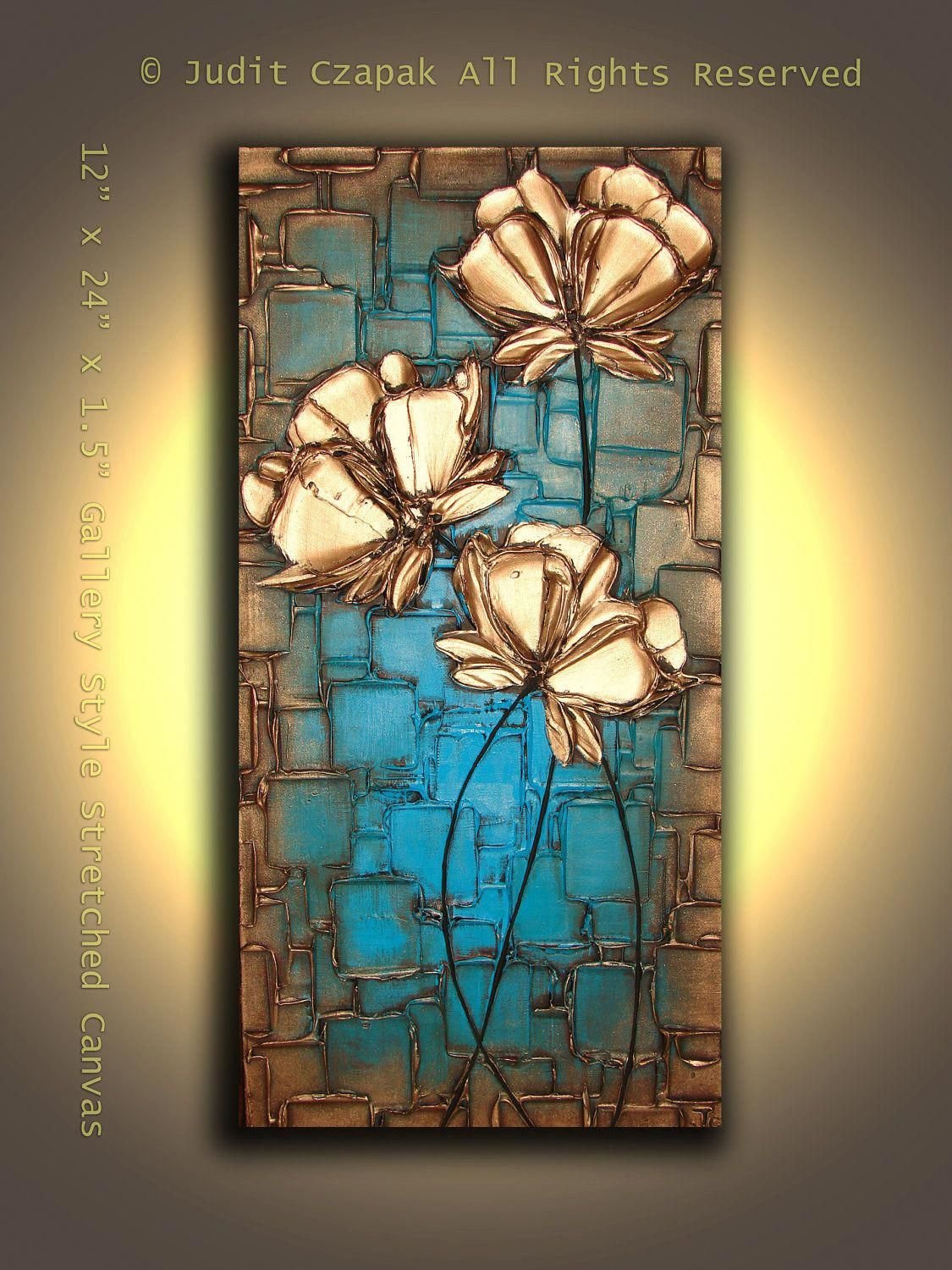 Комментируют Интерьерная картина с поталью и текстурной пастой: