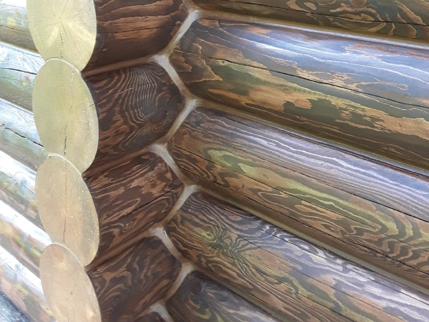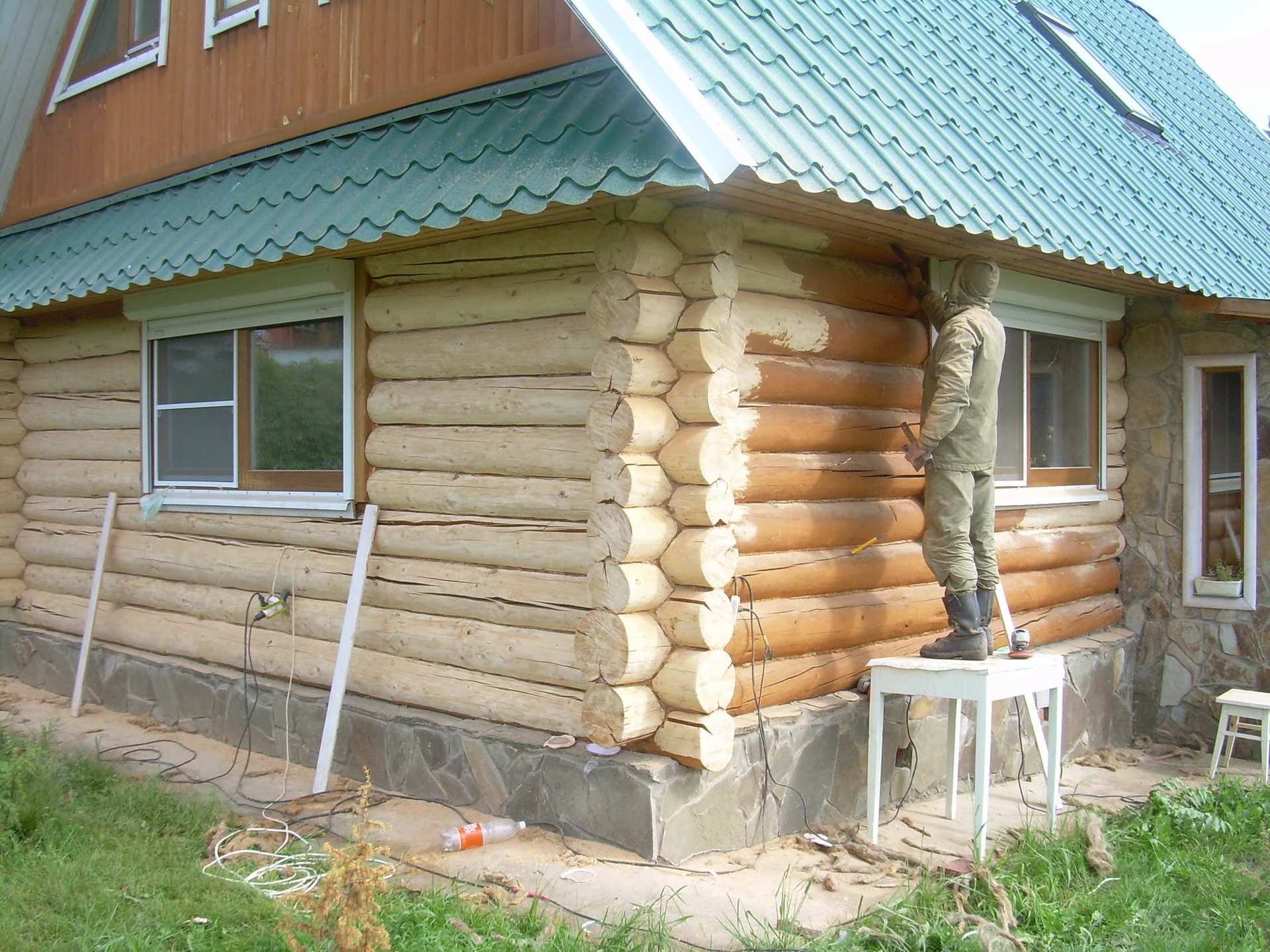 Покраска дома из оцилиндрованного бревна снаружи