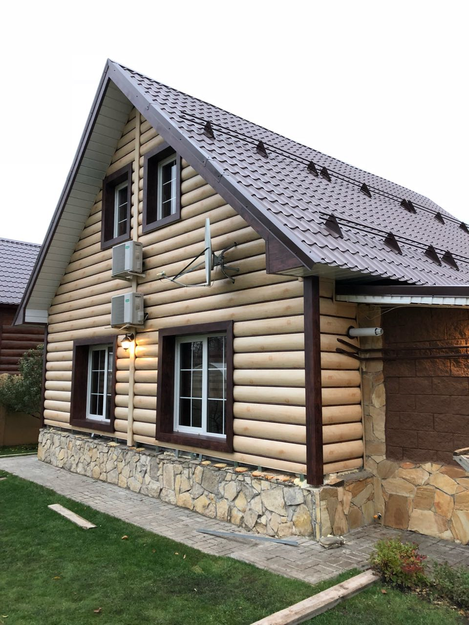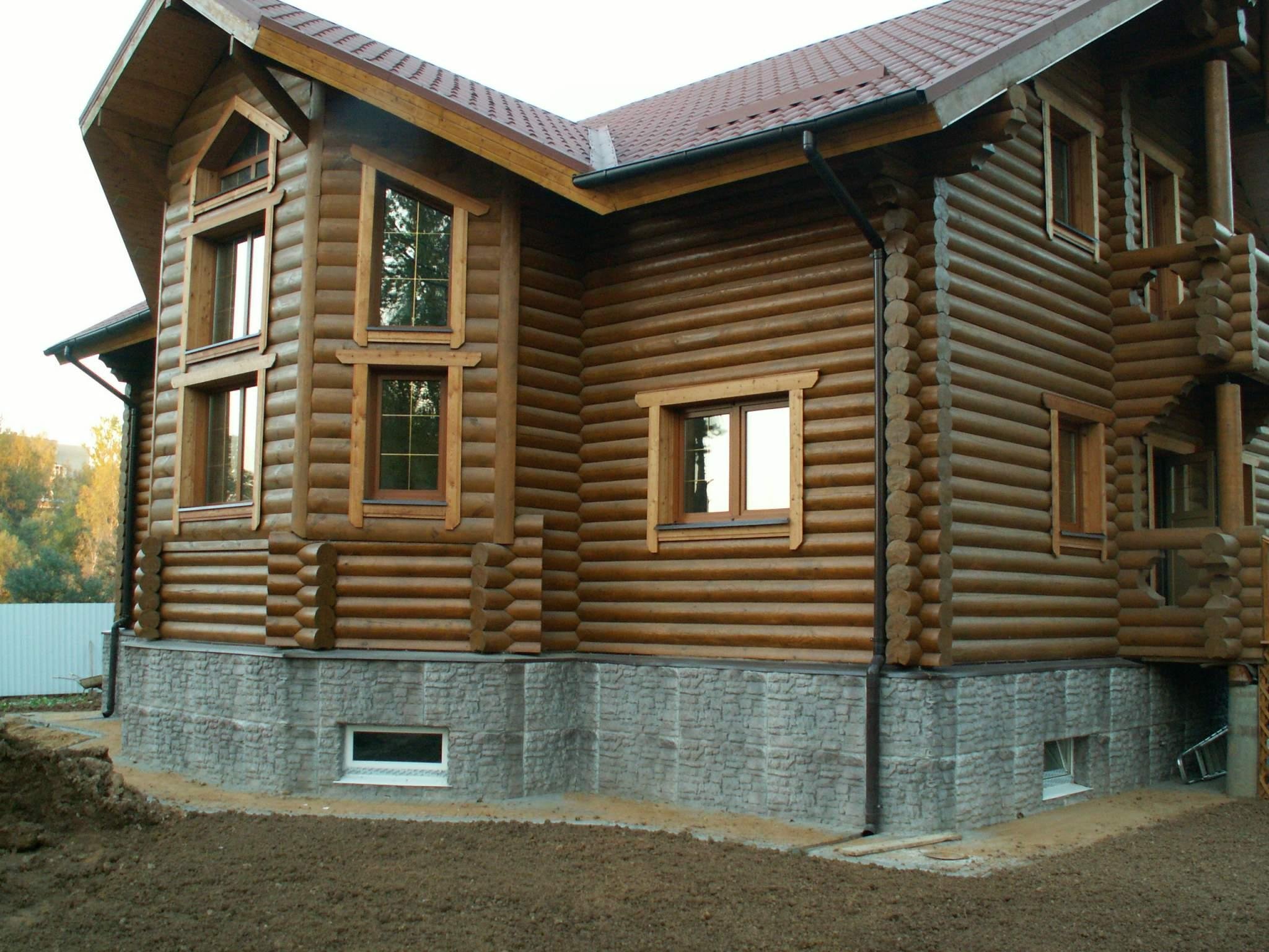 Отделка цоколя бревенчатого дома
