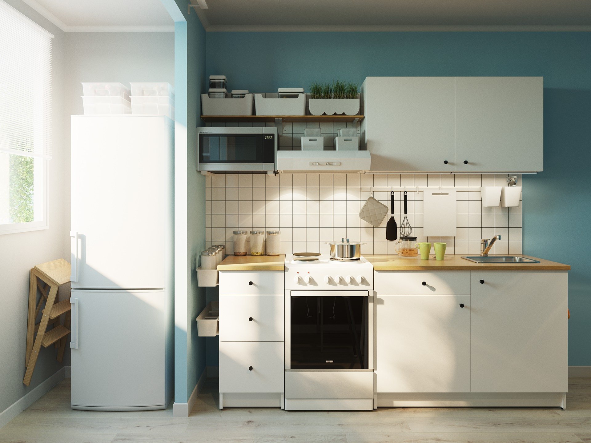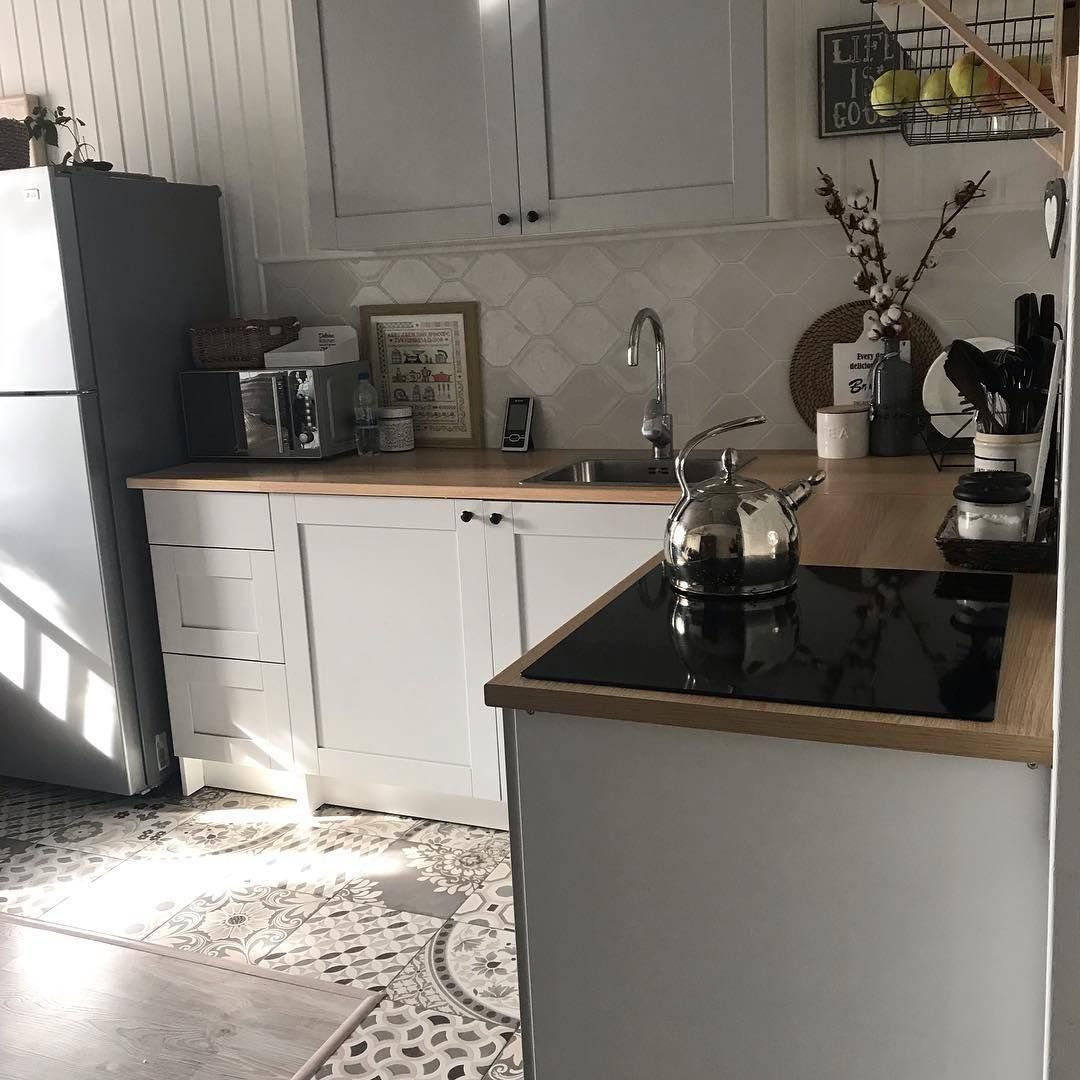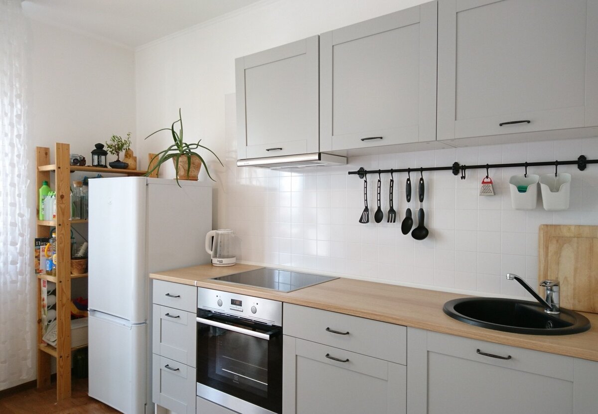 Кухня икеа КНОКСХУЛЬТ белая в интерьере