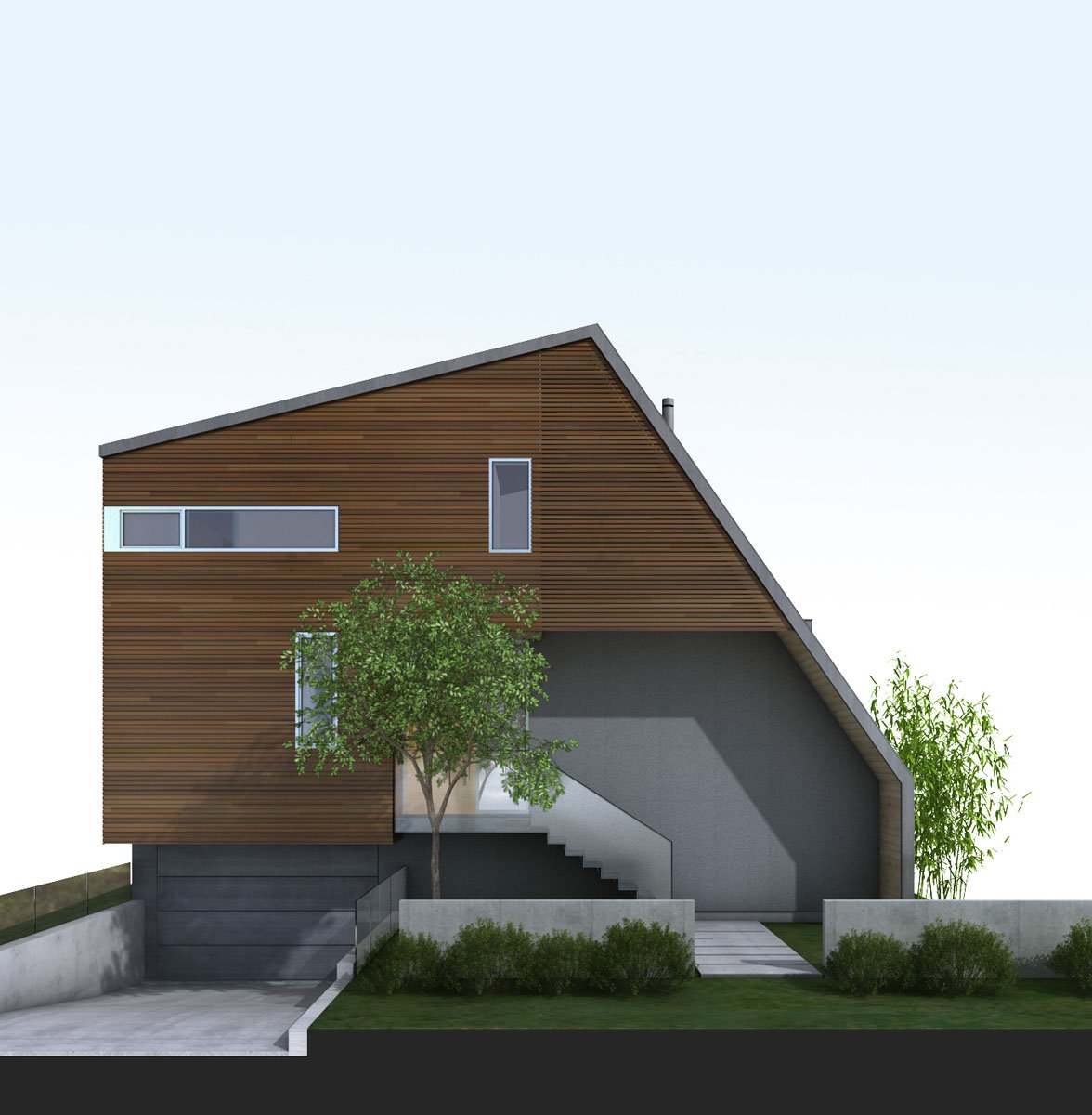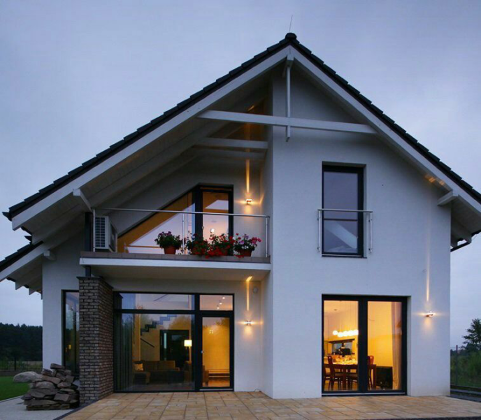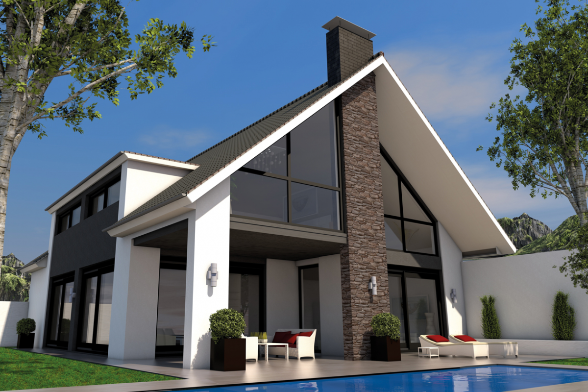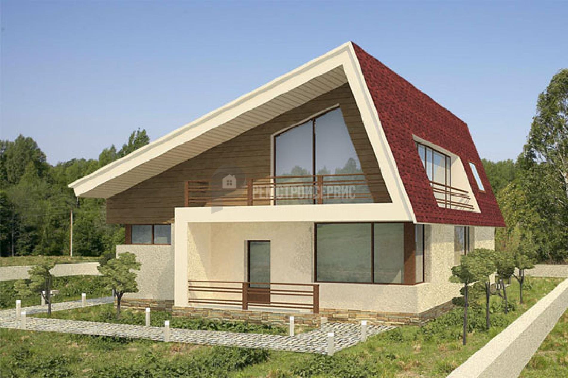 Современный дом с двухскатной крышей