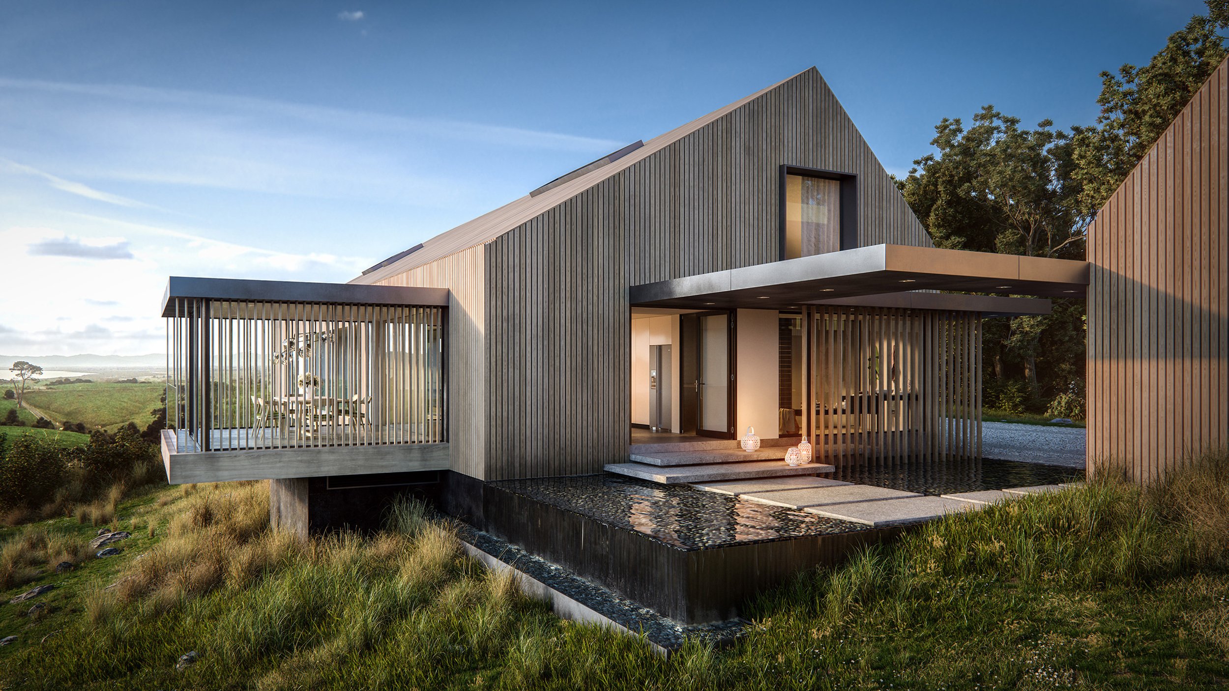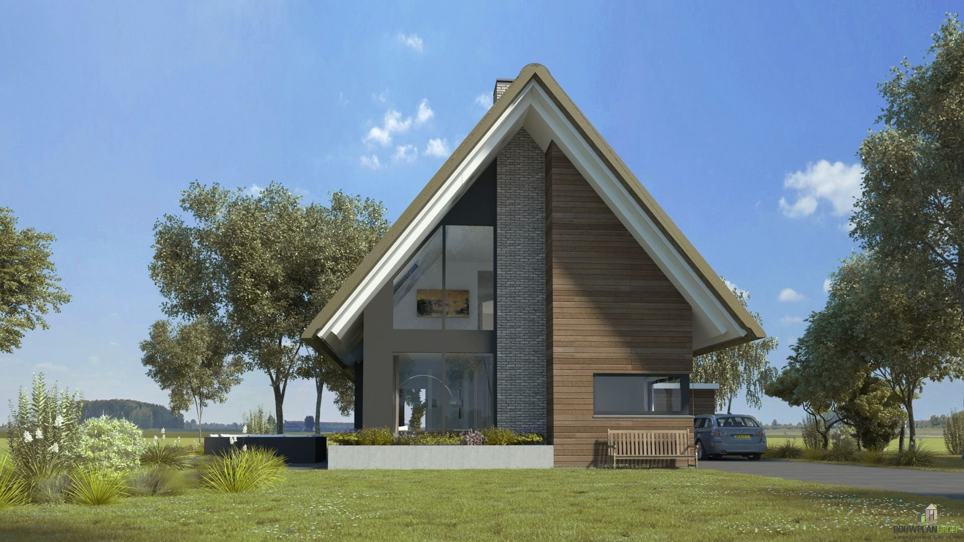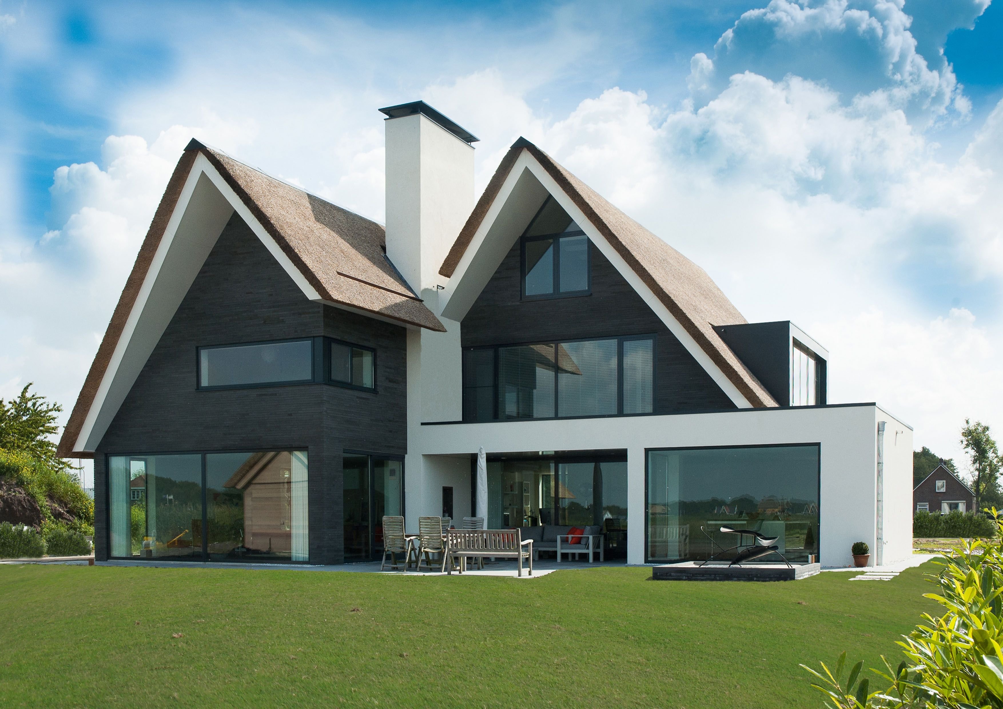 Современный дом с двухскатной крышей