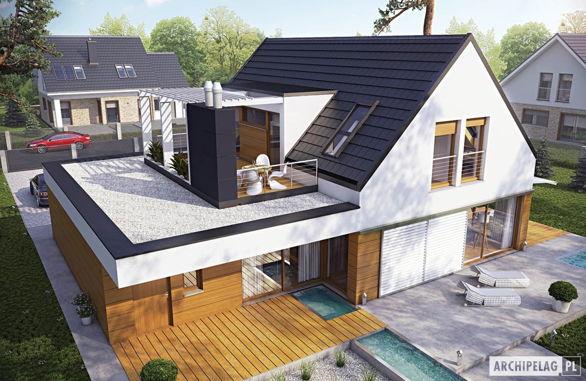 Дом с террасой на крыше гаража