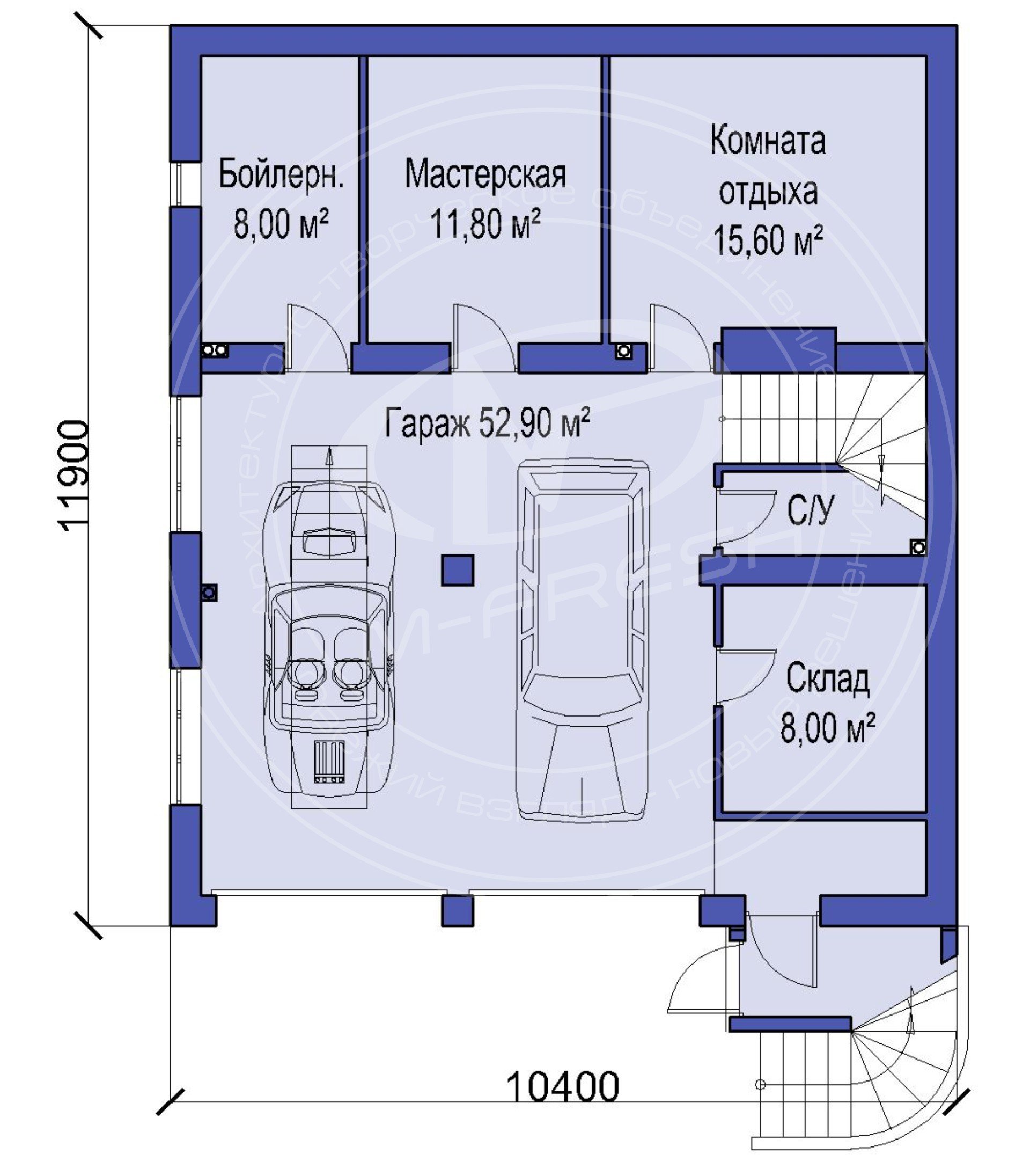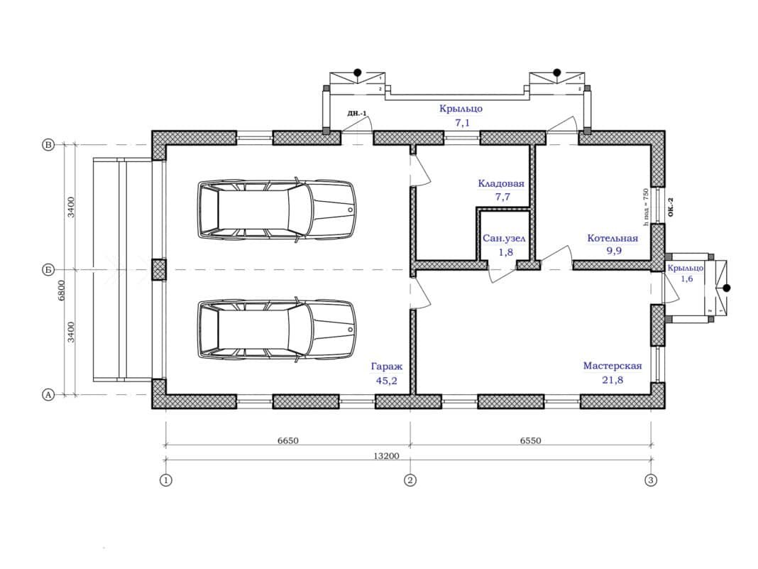 Проект гаража из газобетона на 2 машины с мастерской