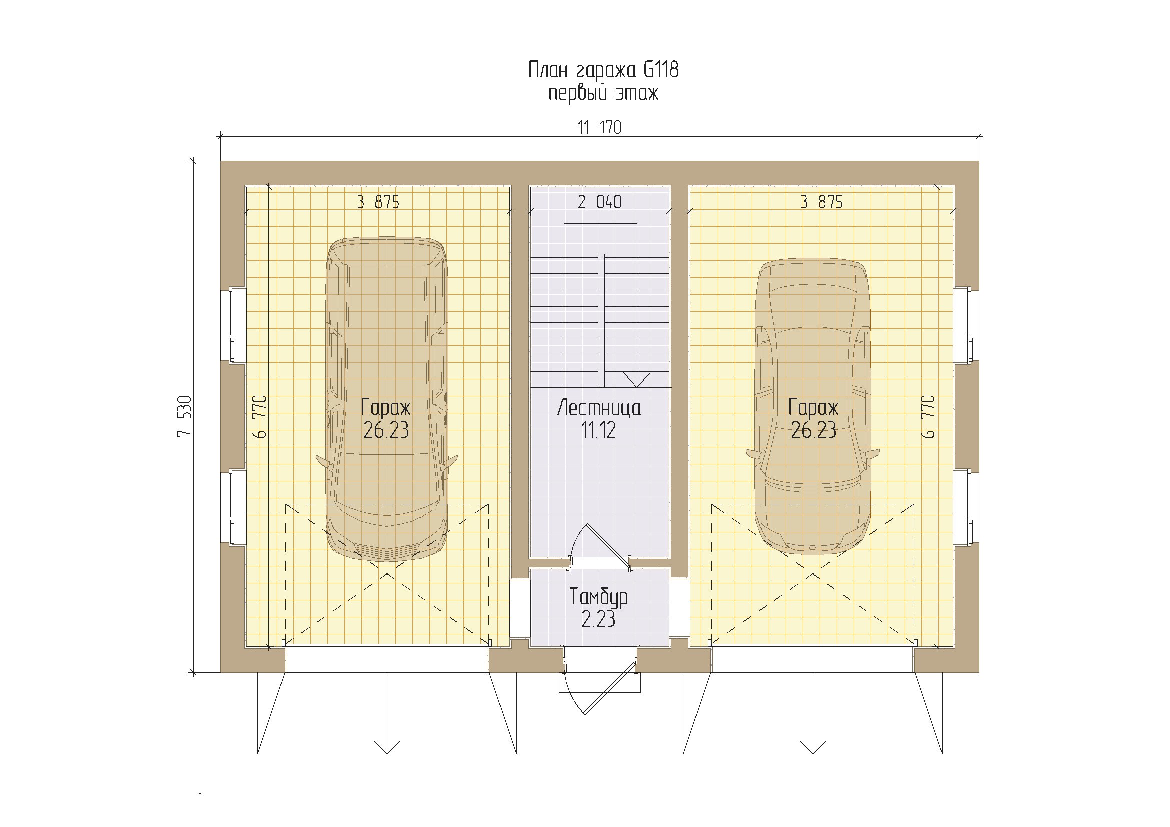 Минимальная ширина гаража на 2 машины с двумя воротами