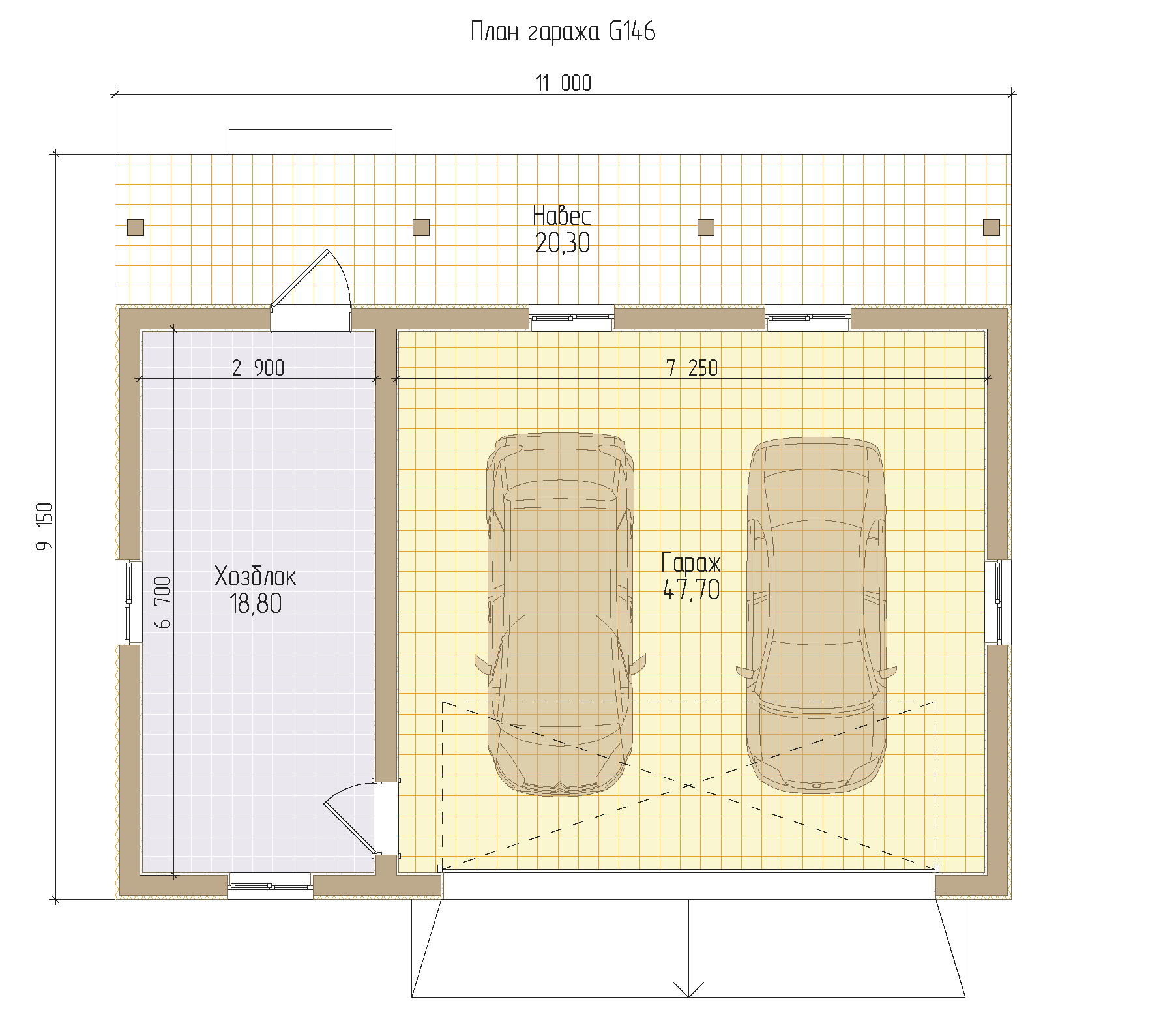 Схема гаража на 2 машины с одними воротами