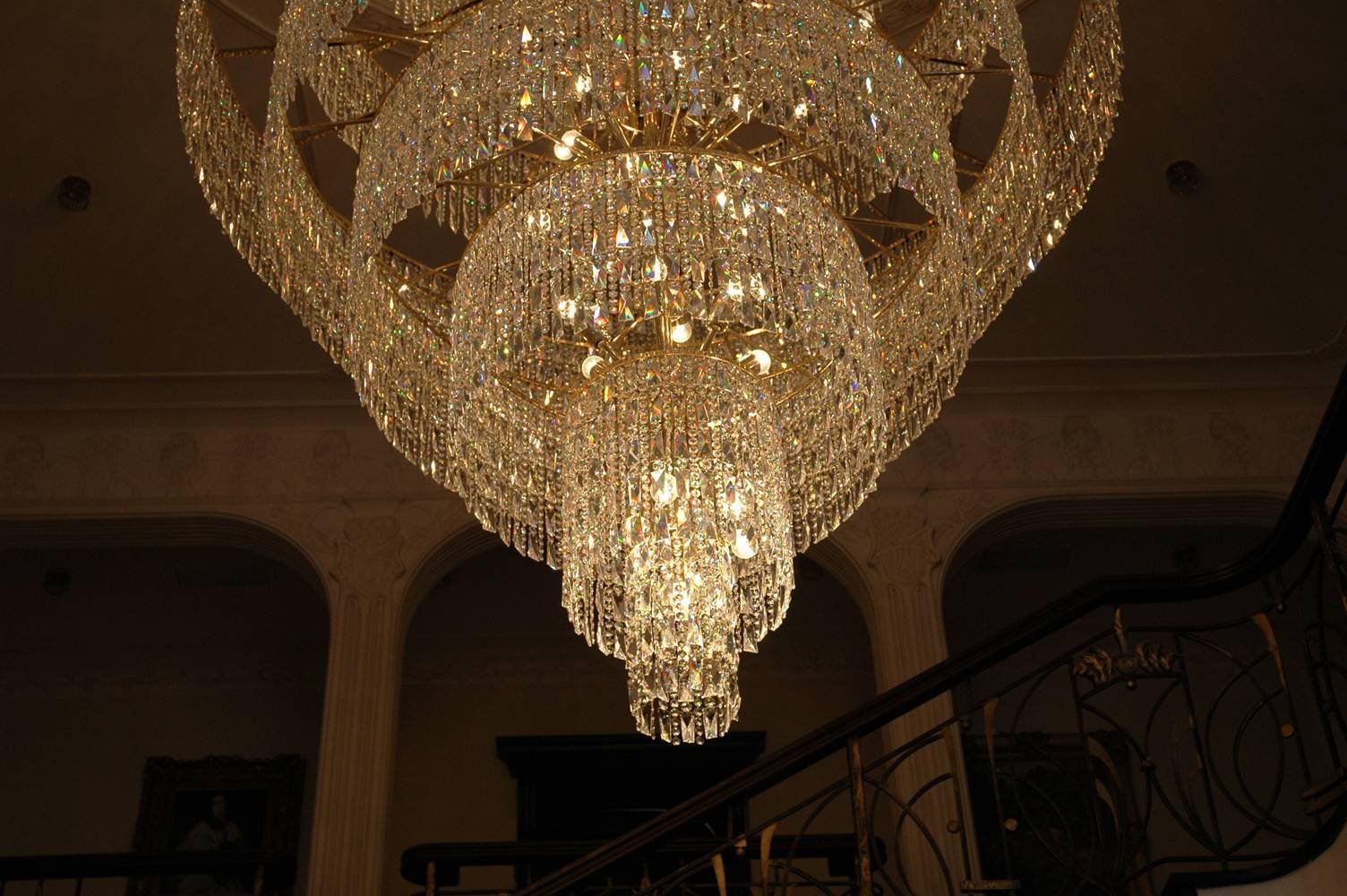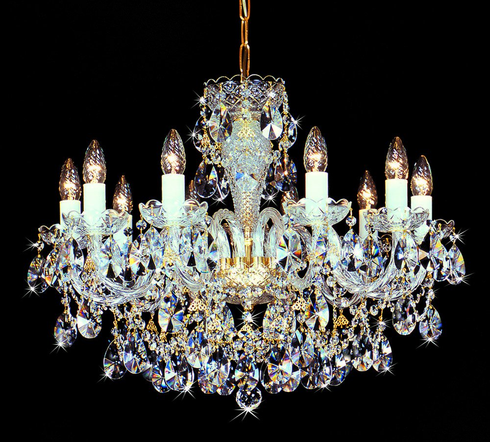 Чешская хрустальная десятирожковая двухъярусная люстра