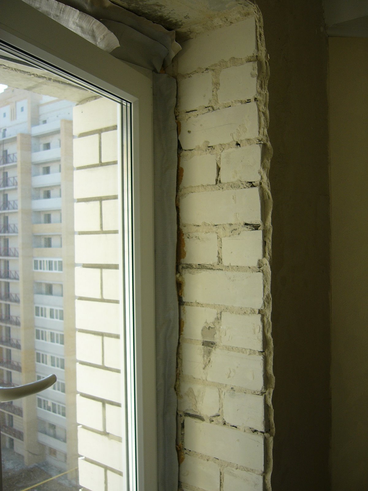 Откосы на кирпичной стене