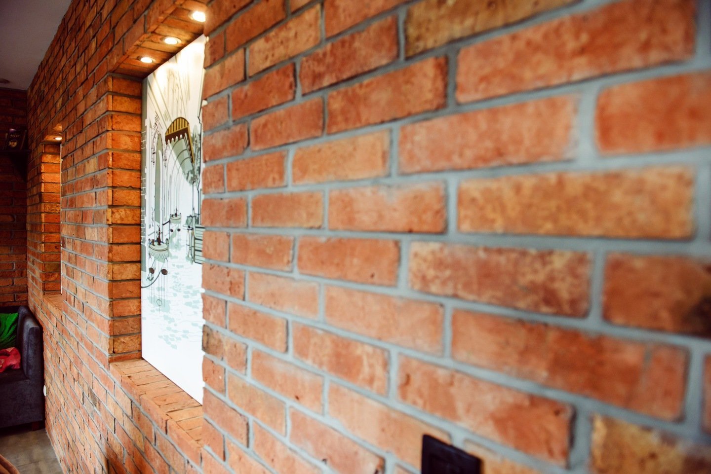 Кирпичные откосы окон в интерьере