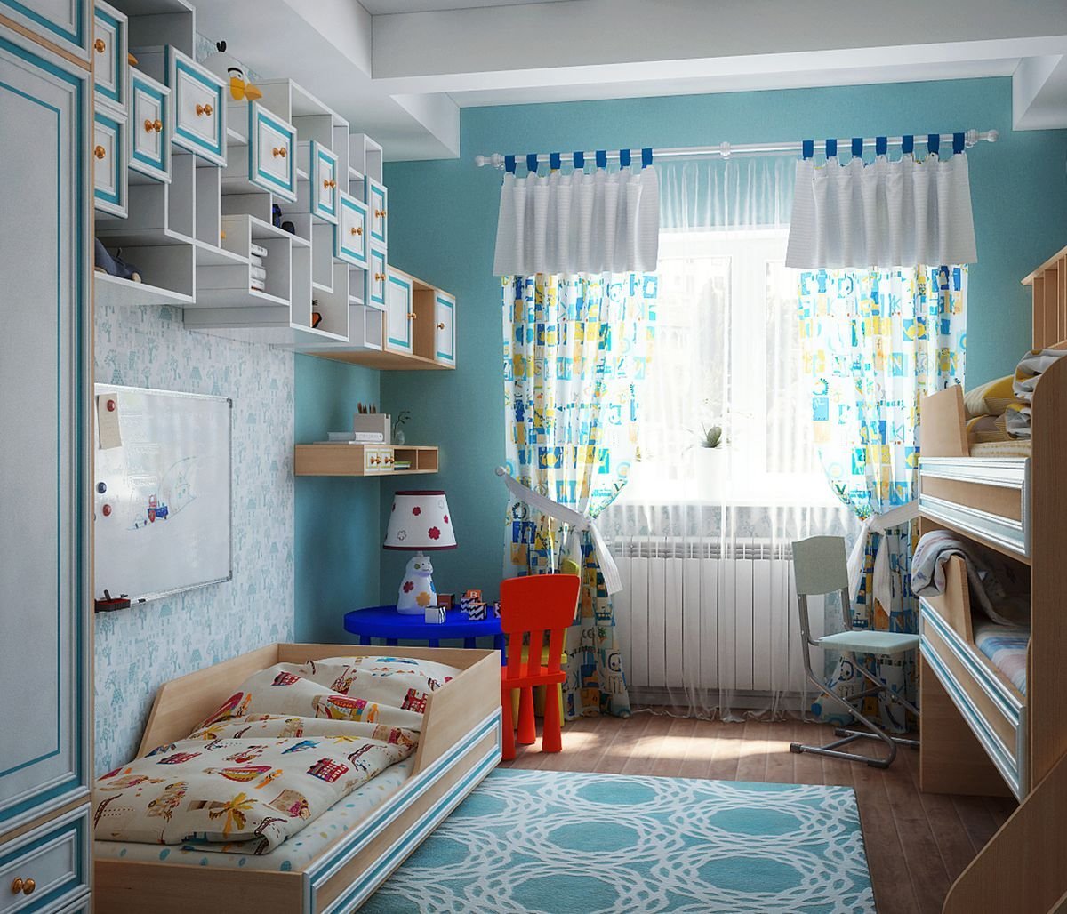 Интерьер детской комнаты для троих разнополых детей