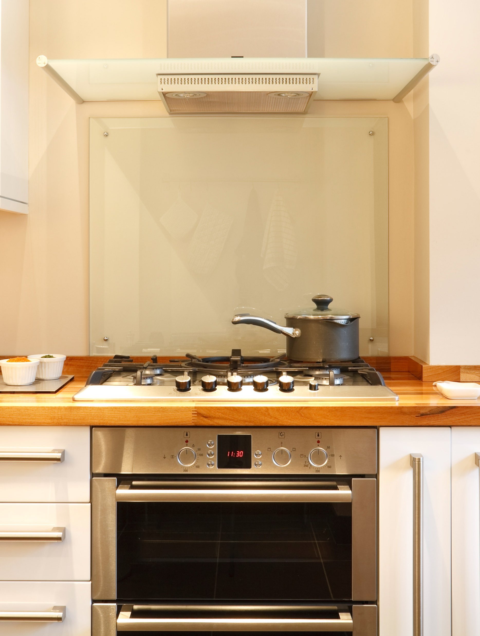 Стеклянная панель для кухни над варочной поверхностью
