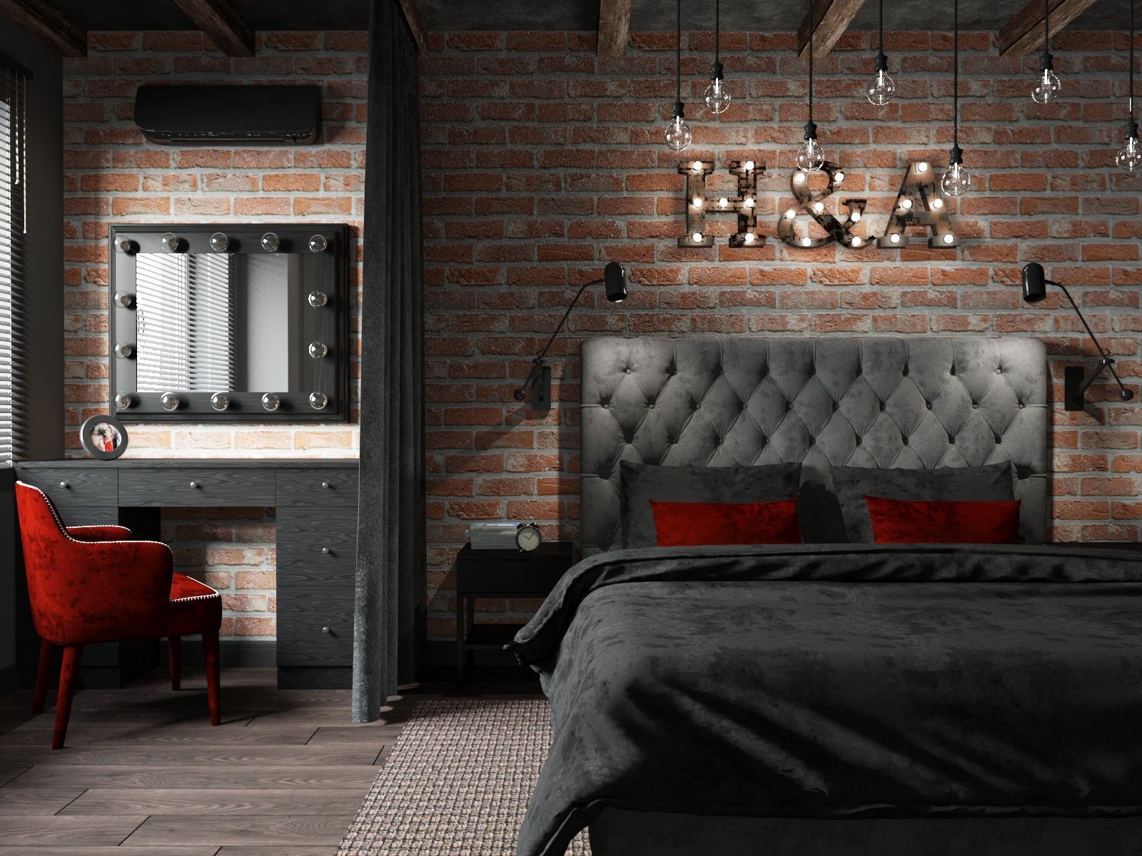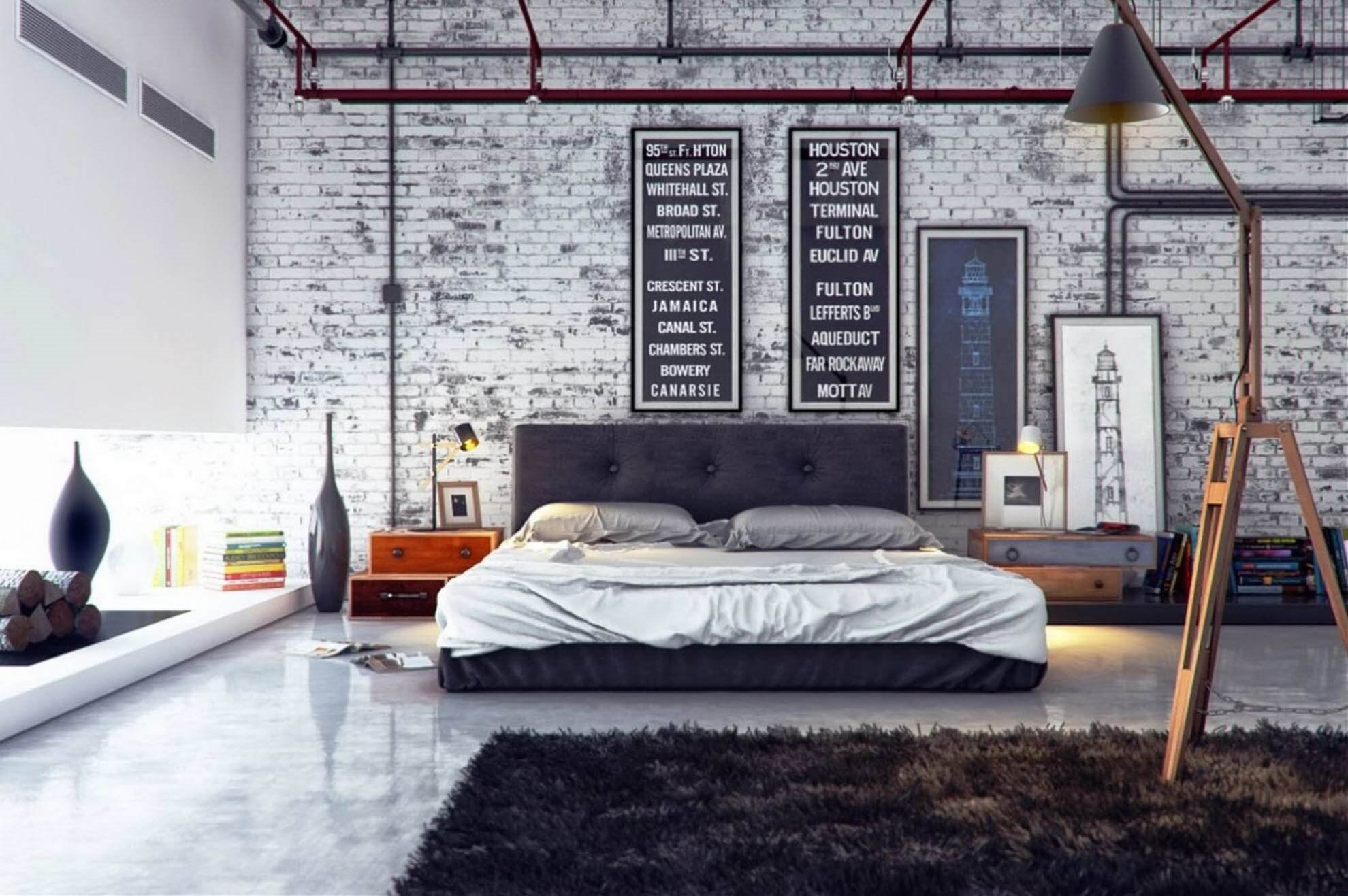 Спальня в стиле лофт индустриал