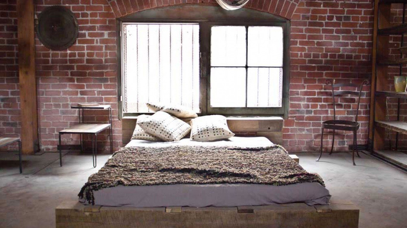 Спальня в стиле лофт белый кирпич
