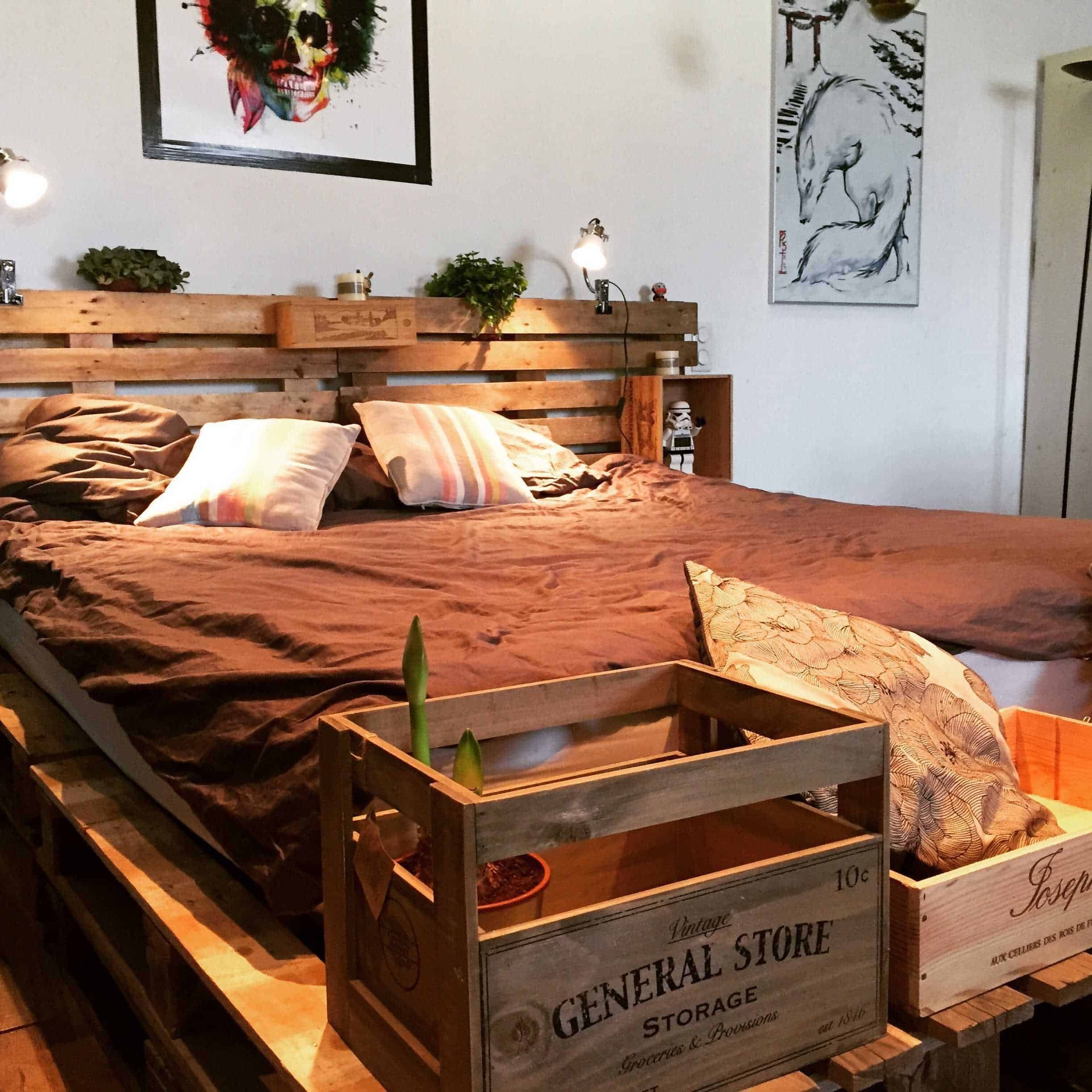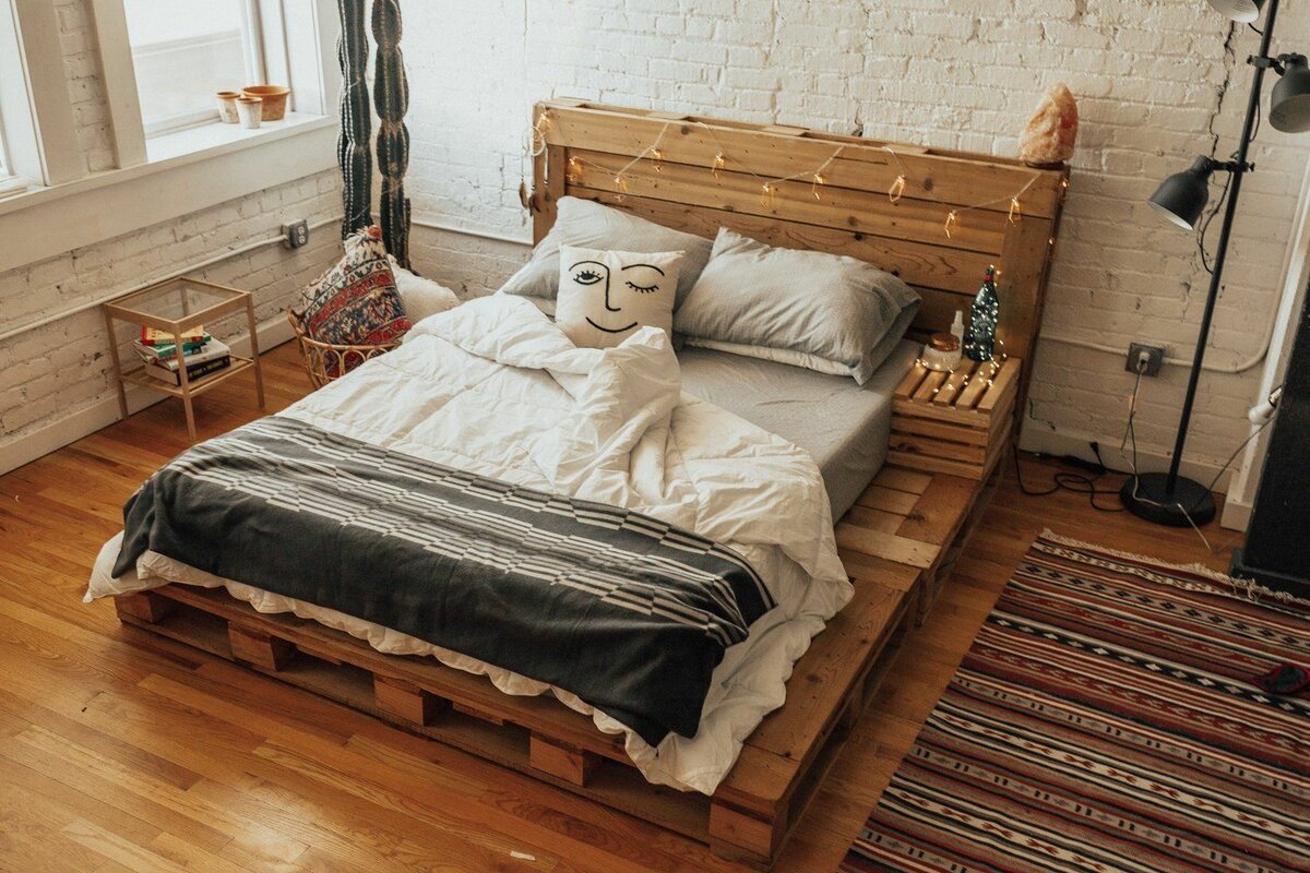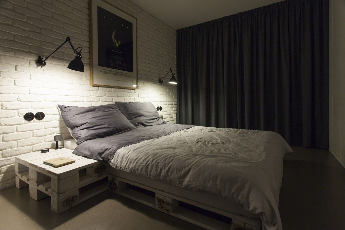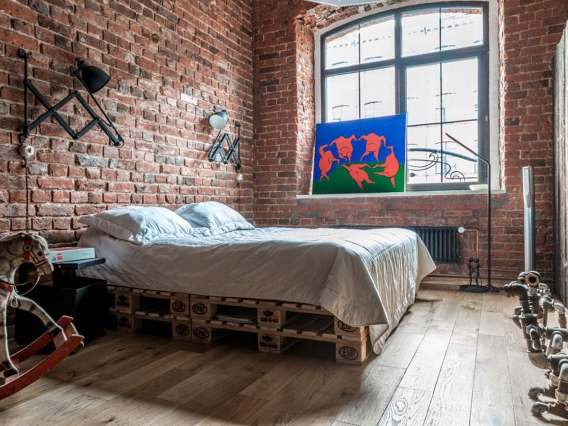 Спальня в стиле лофт с палет
