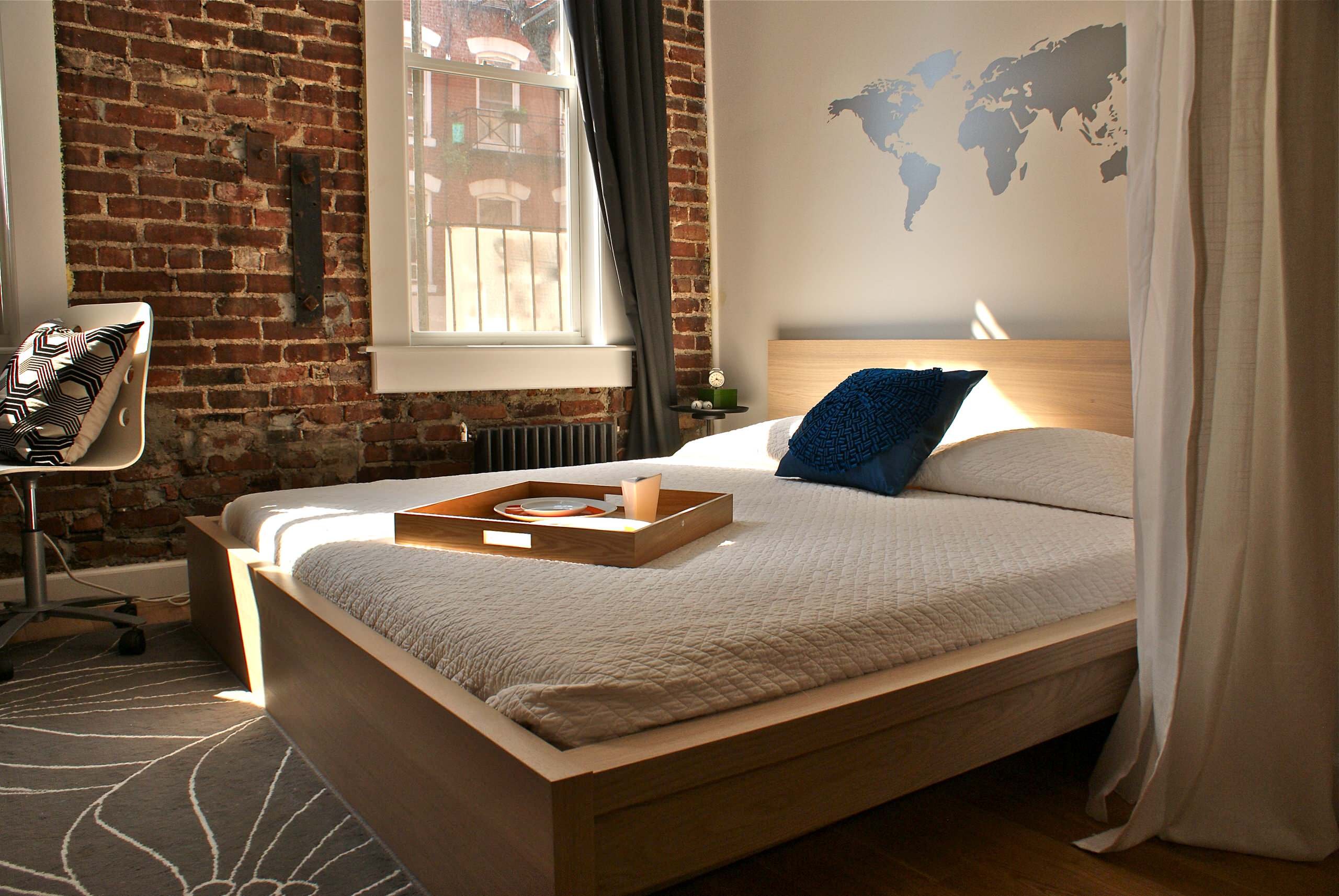 Спальня с красным кирпичом