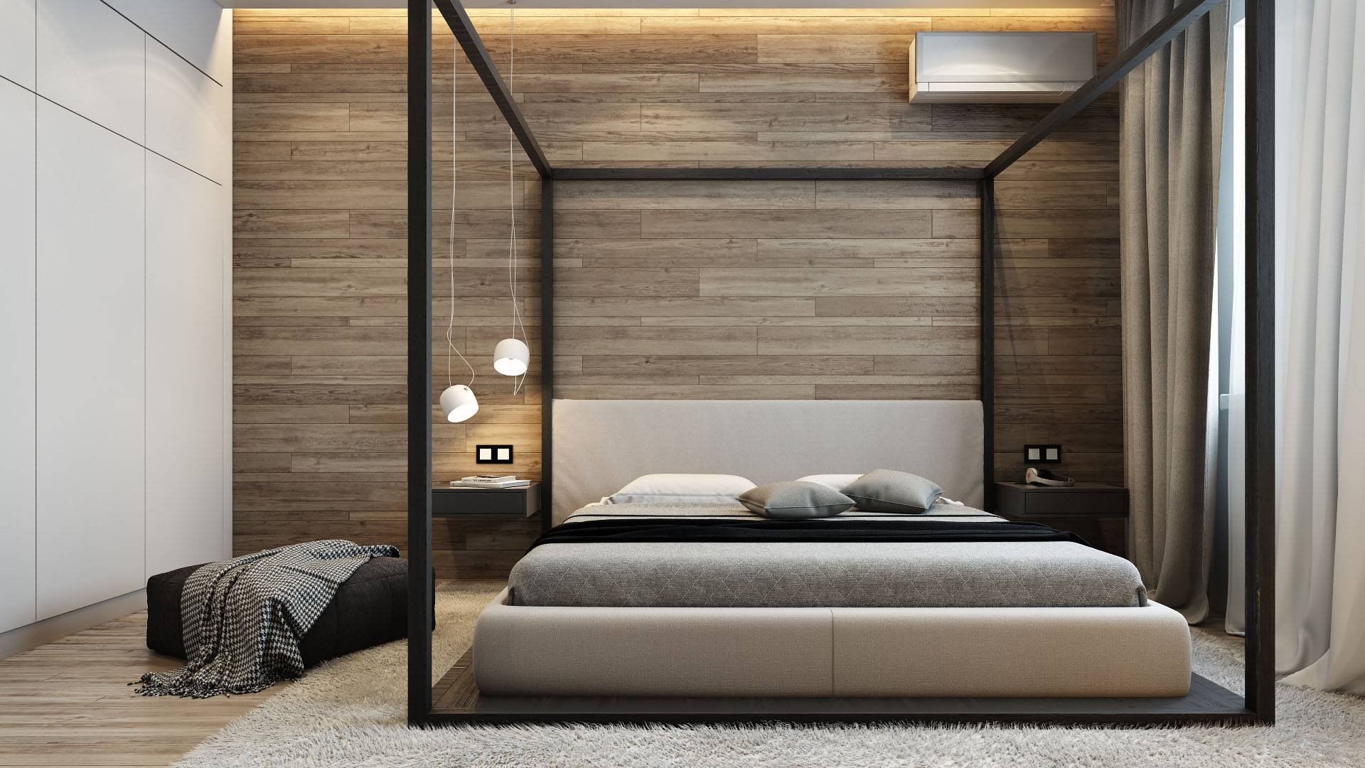 Отделка спальни деревом