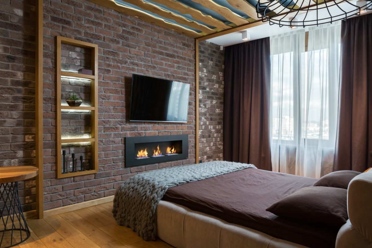 Кирпич в интерьере спальни