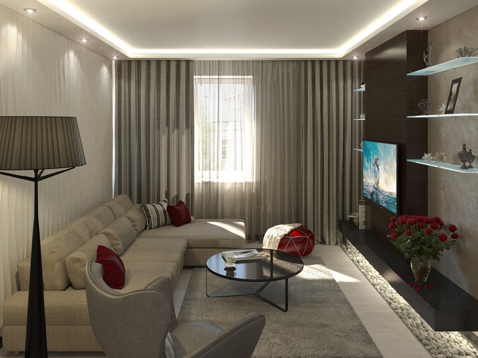 Потолок гостиной 18 кв м