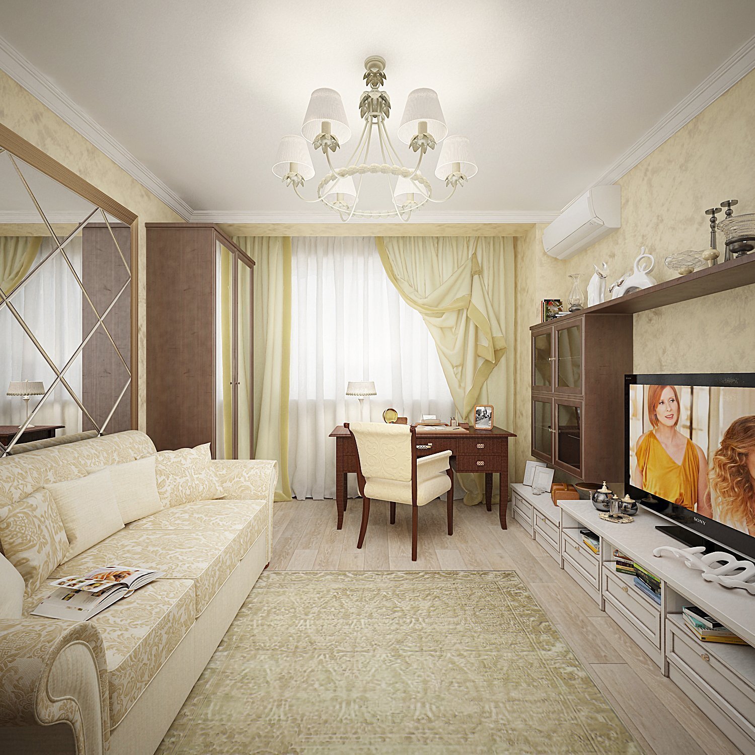 Зал в трехкомнатной квартире