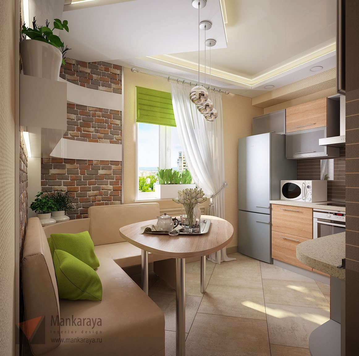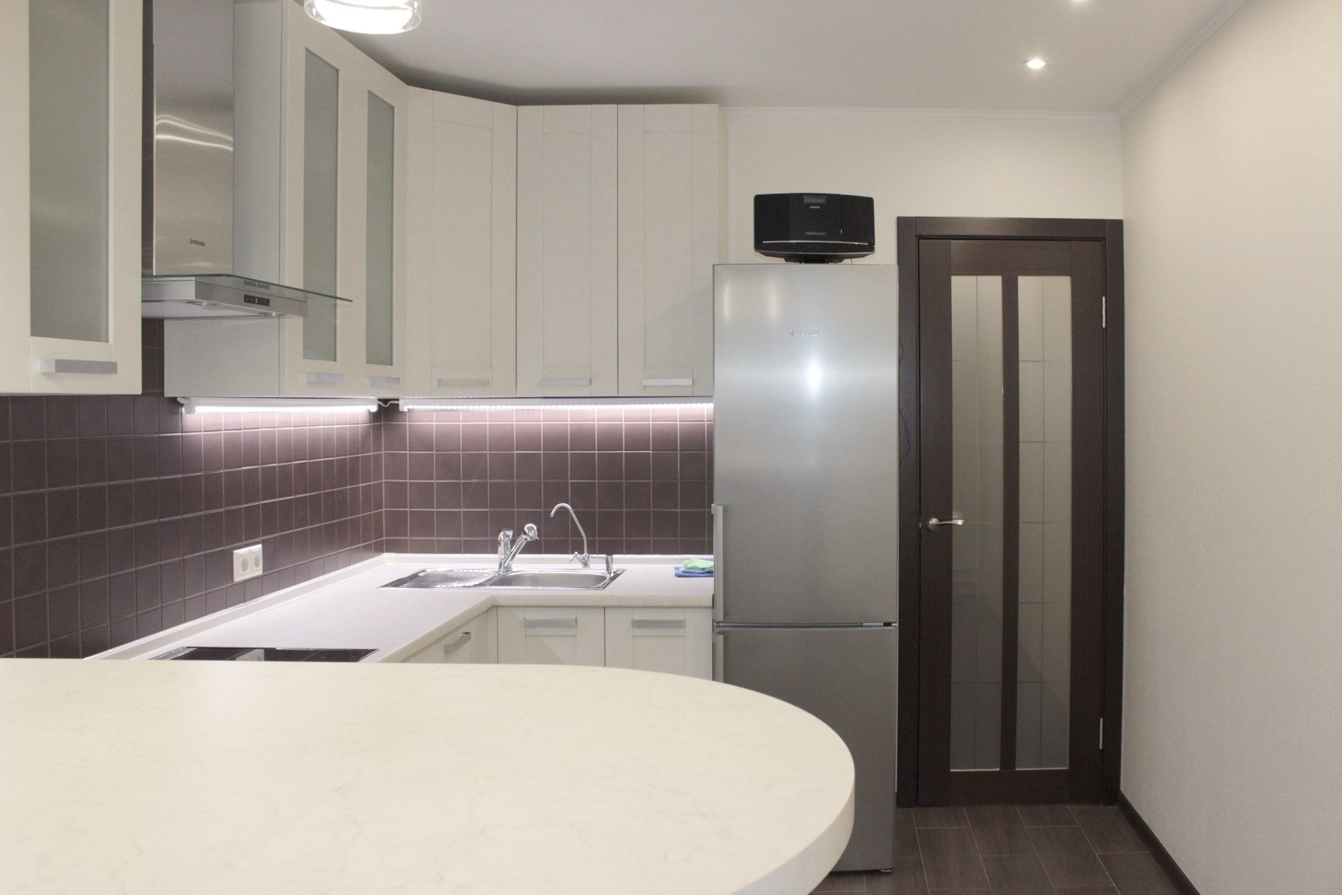 Интерьер кухни в трехкомнатной квартире п44