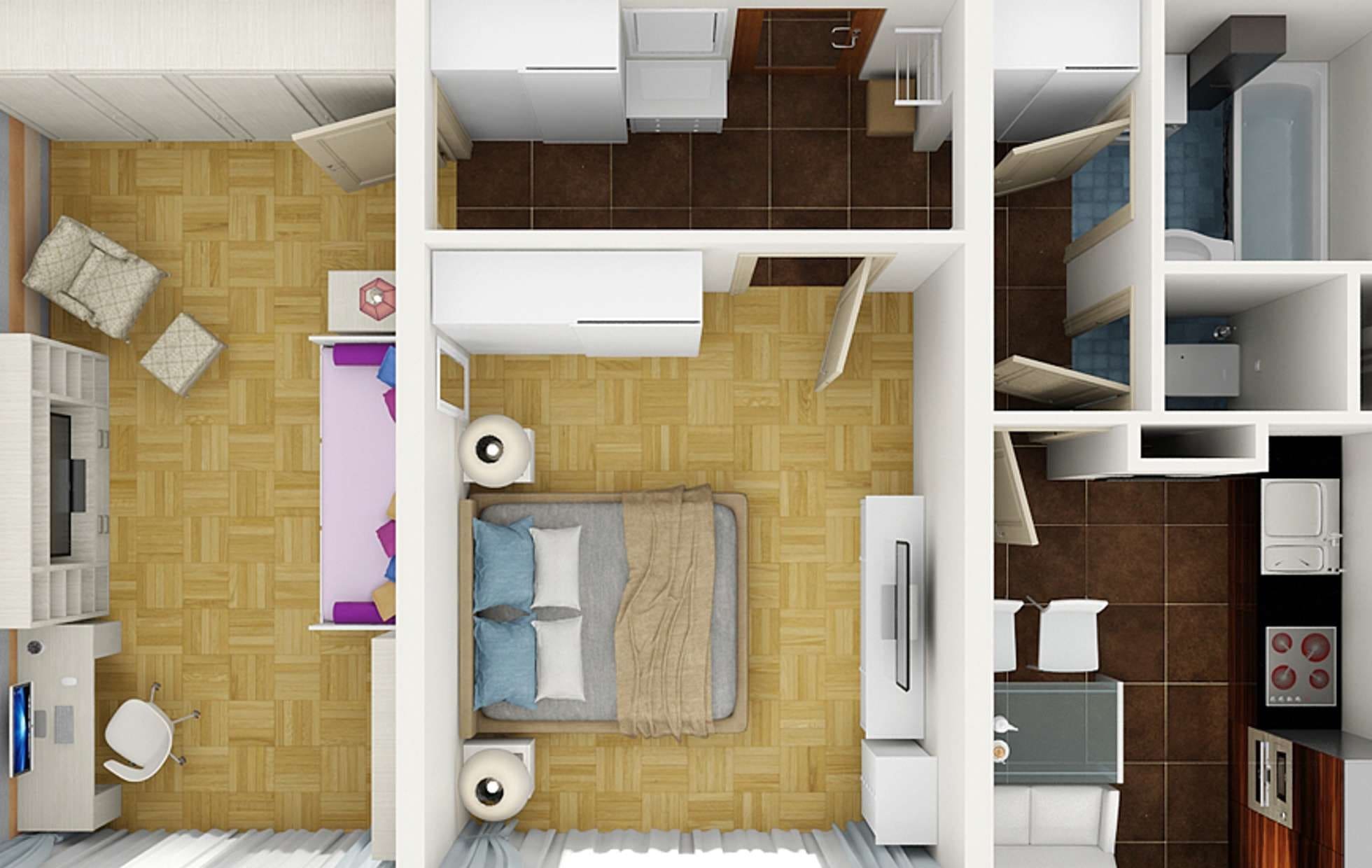 Интерьер однокомнатной квартиры п44т