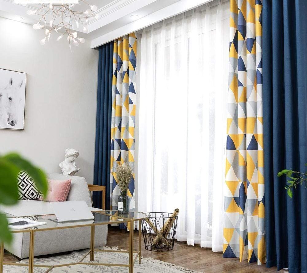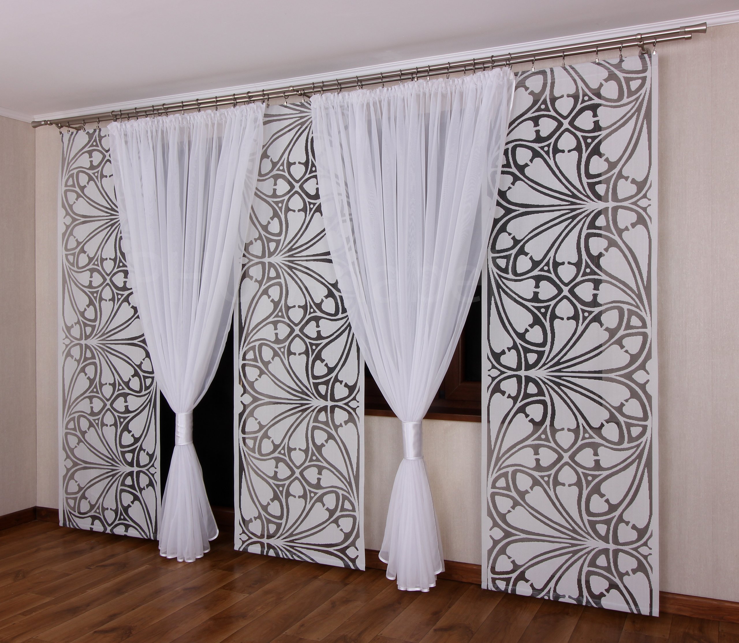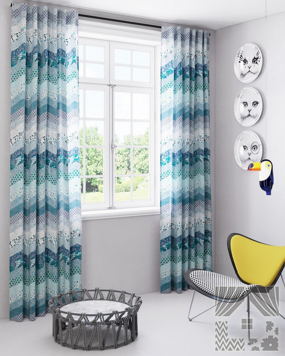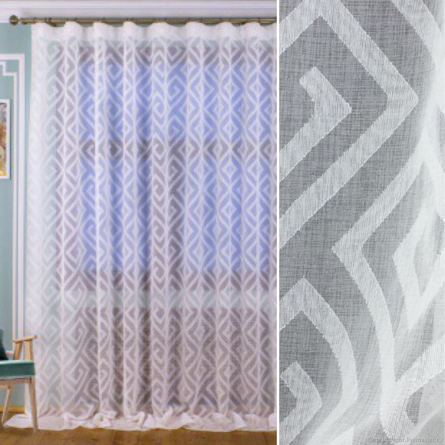 Шторы на кухню с геометрическим рисунком плюс тюль