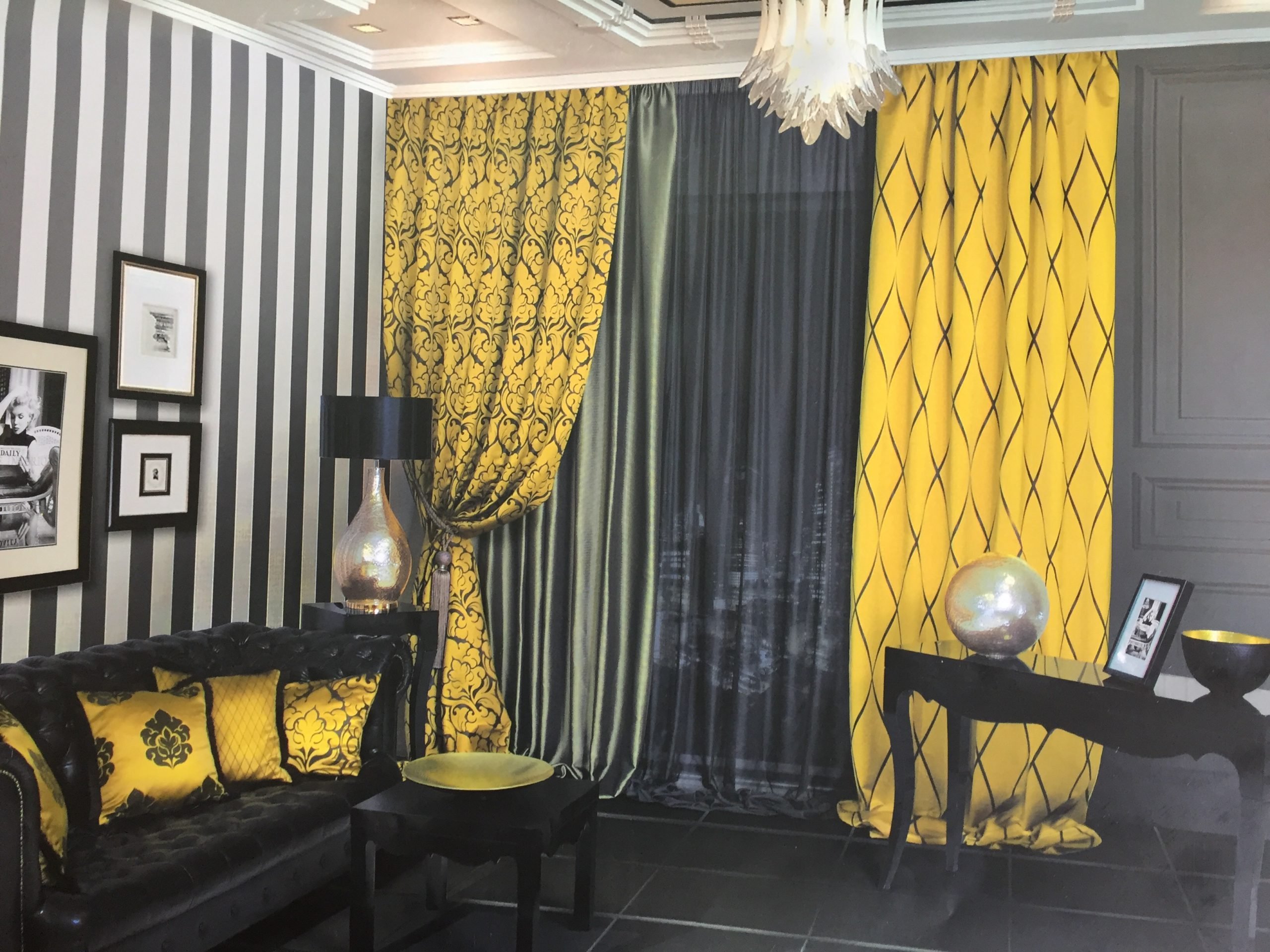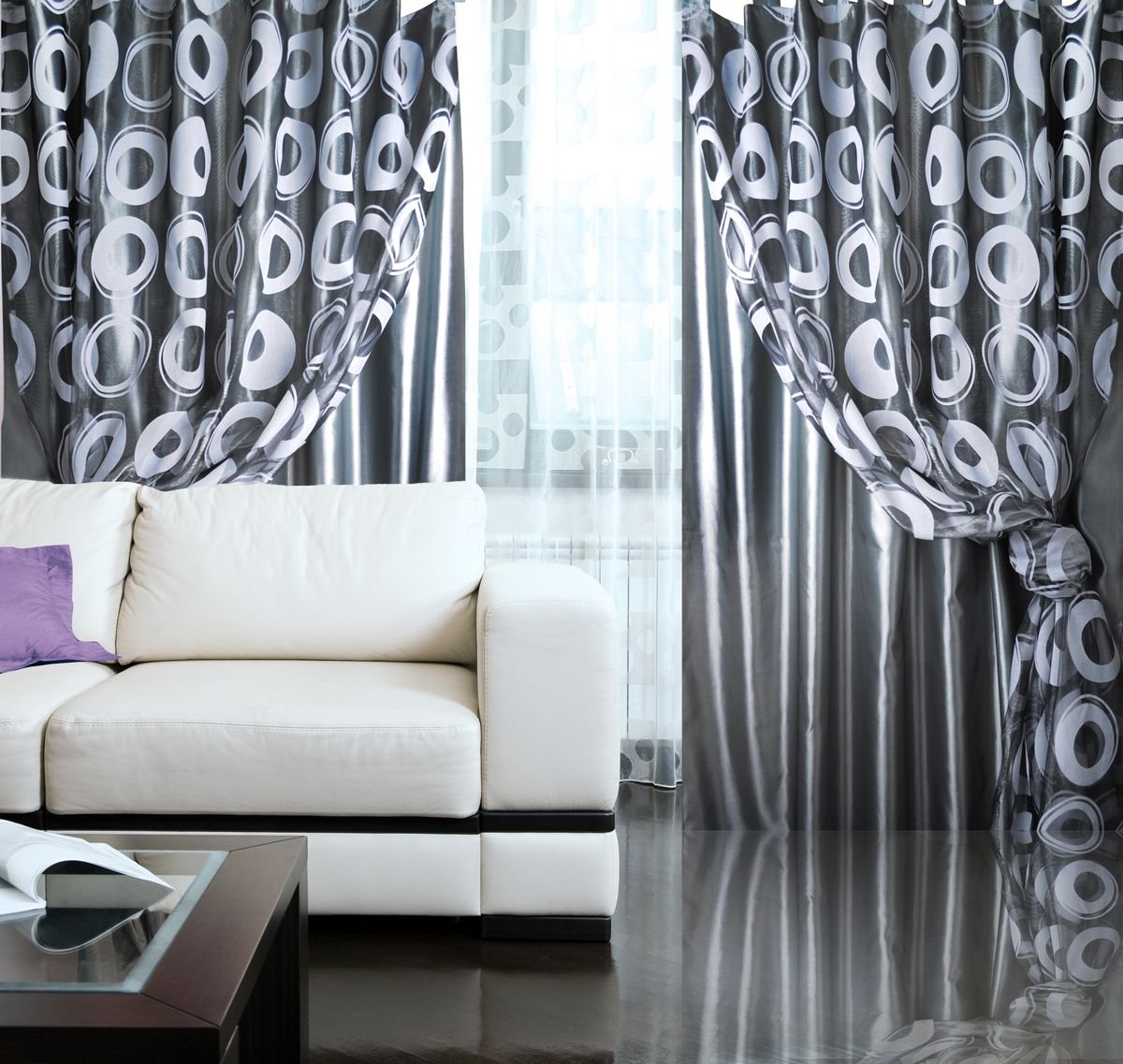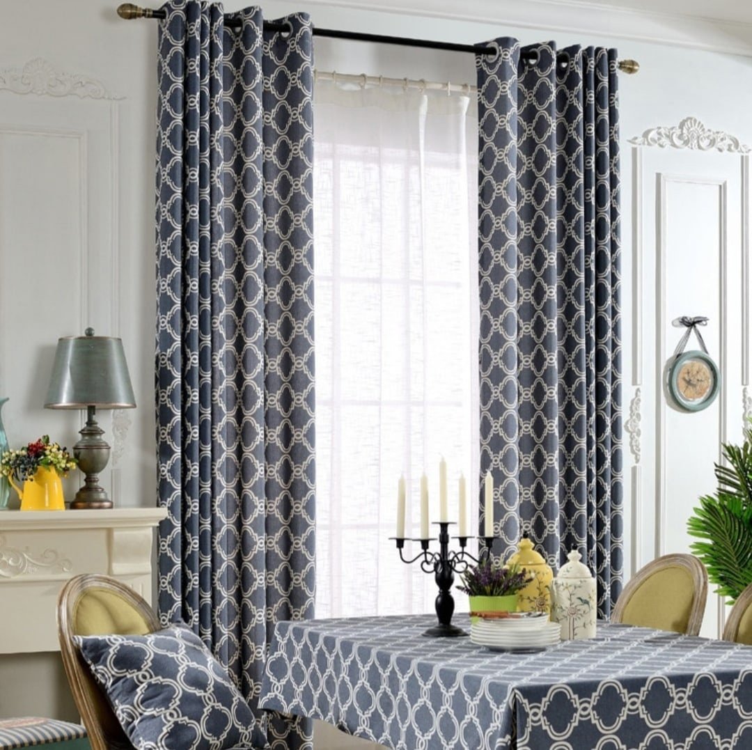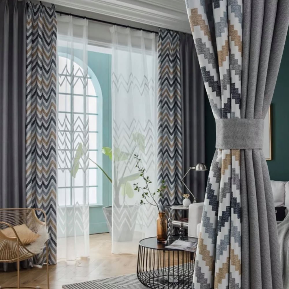 Шторы на кухню с геометрическим рисунком плюс тюль