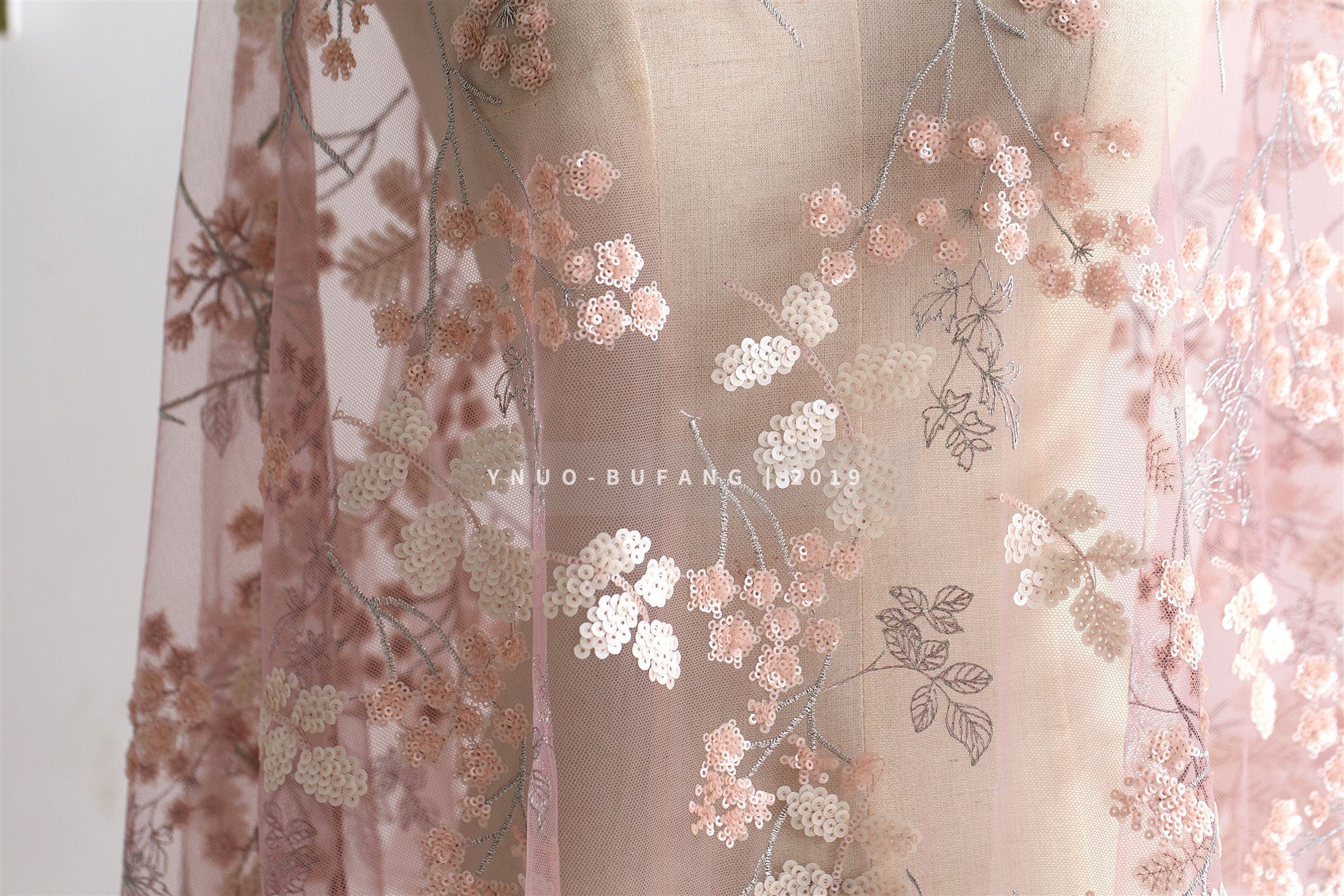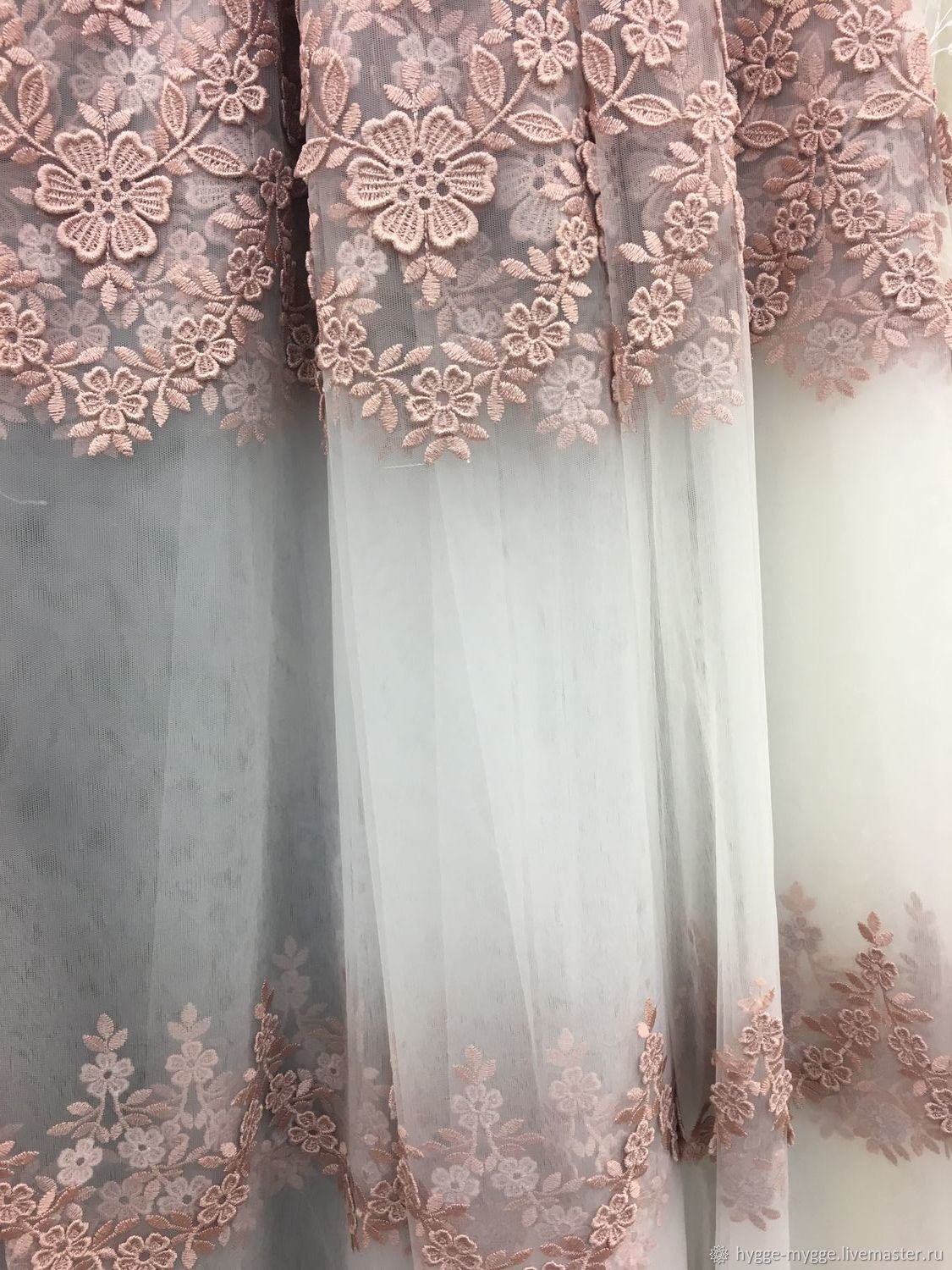 Тюль грязно розового цвета с вышивкой