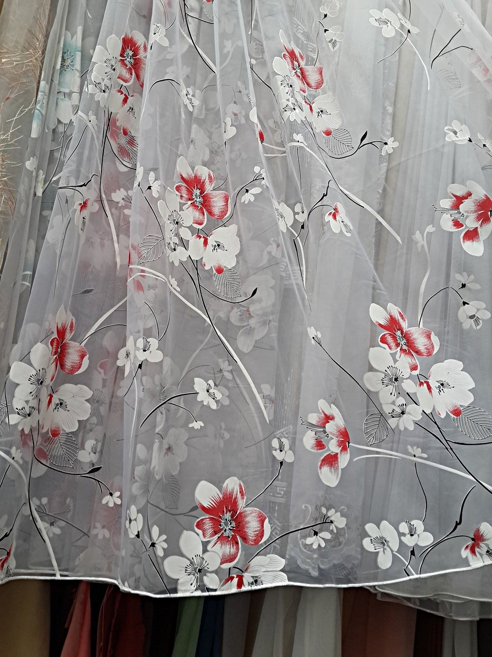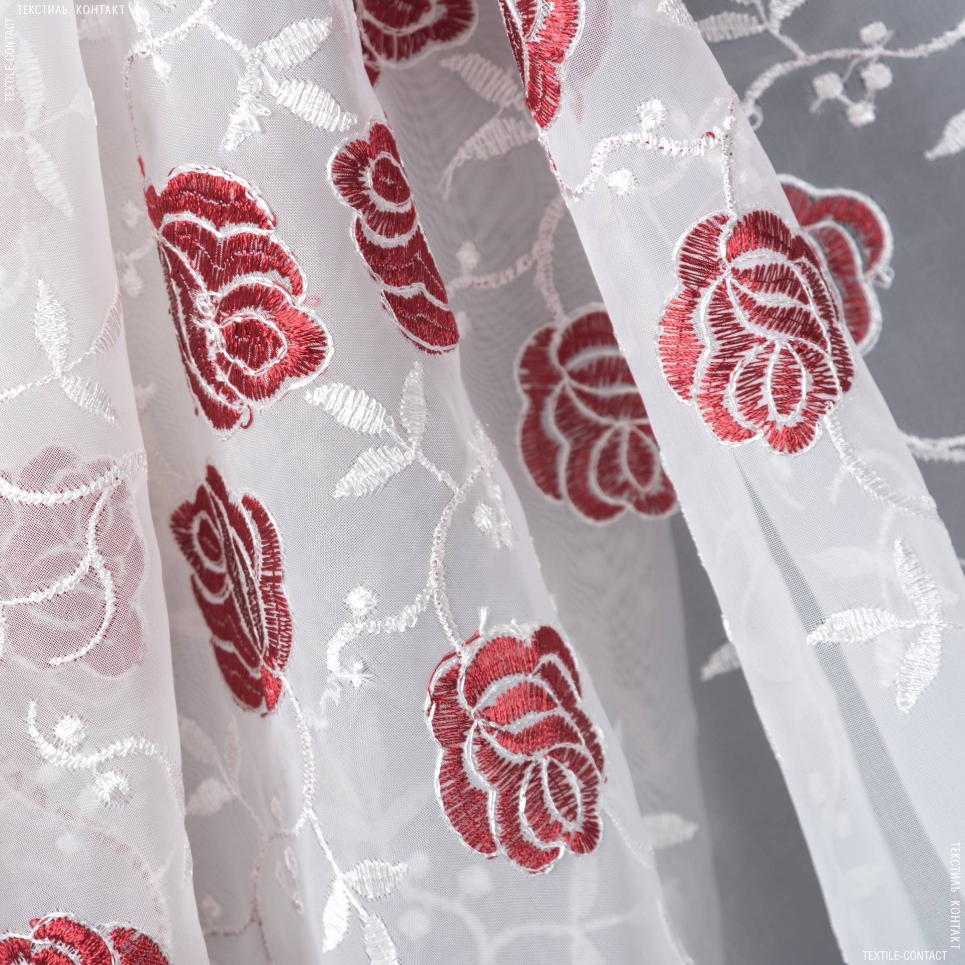 Тюль с розами вышитыми красные