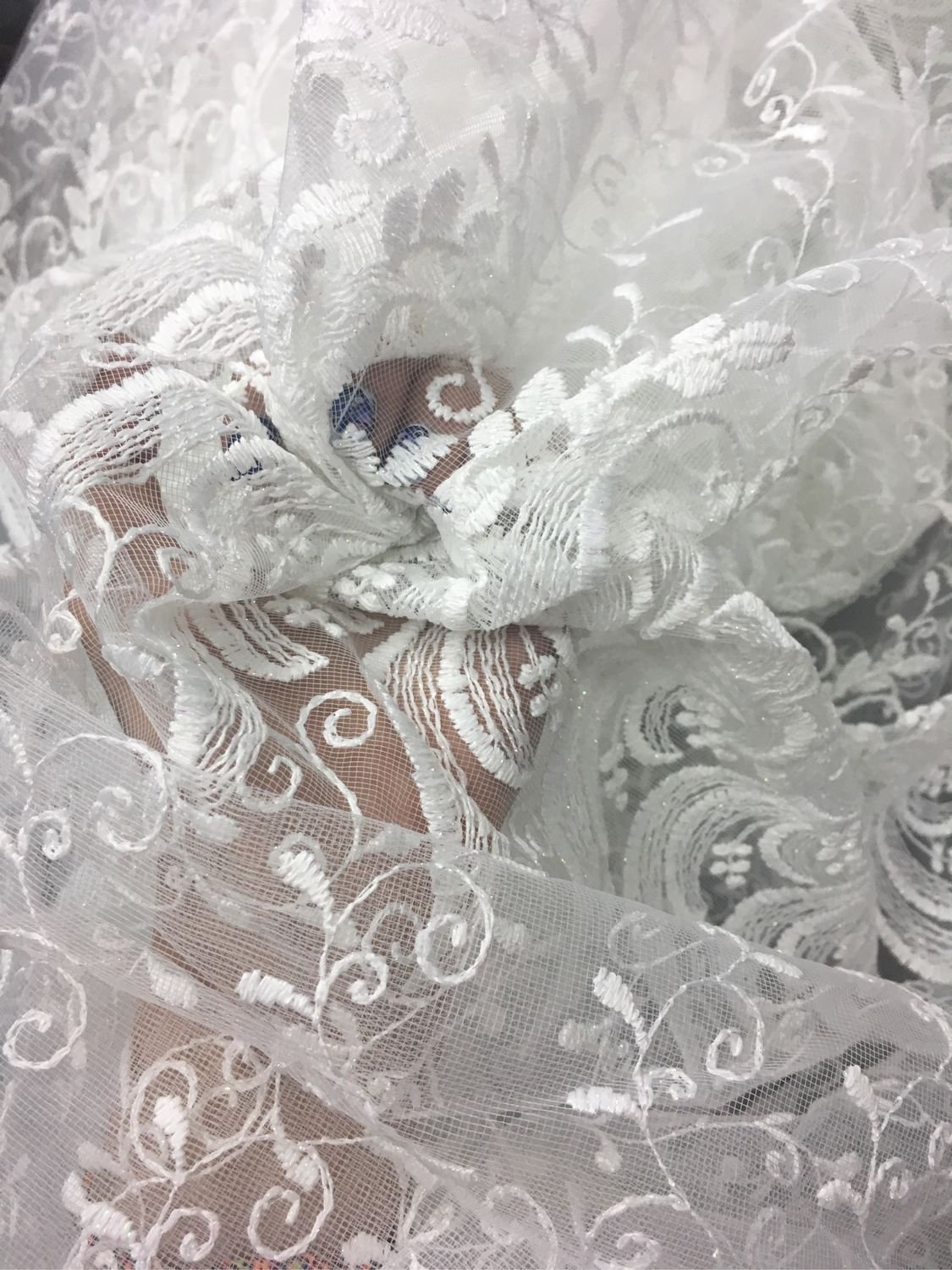 Белая кружевная ткань