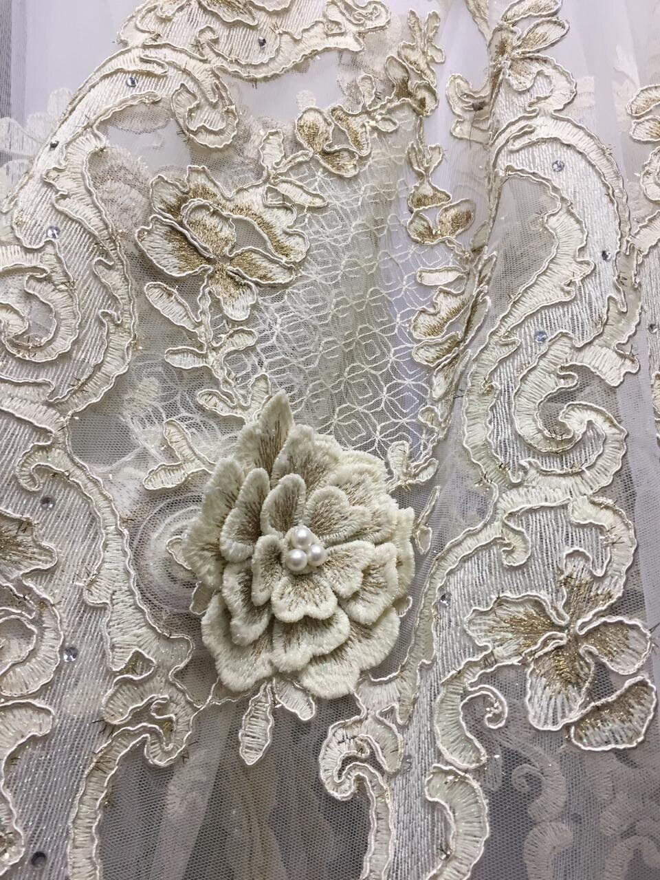 Вышивка премиум с жемчугом f588 Premium тюль