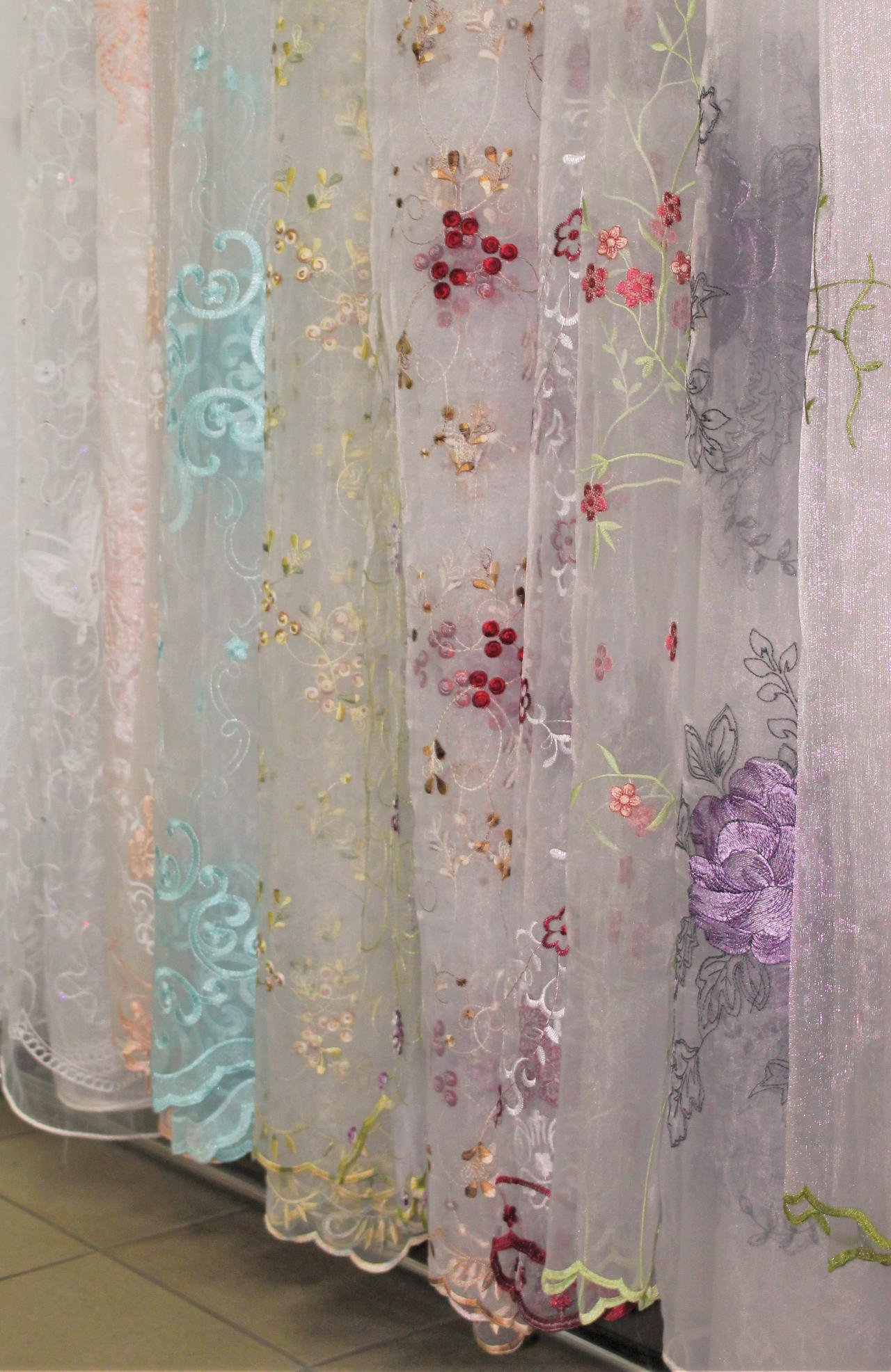 Тюль с цветной вышивкой