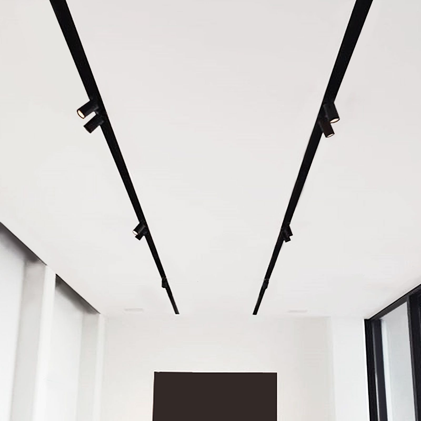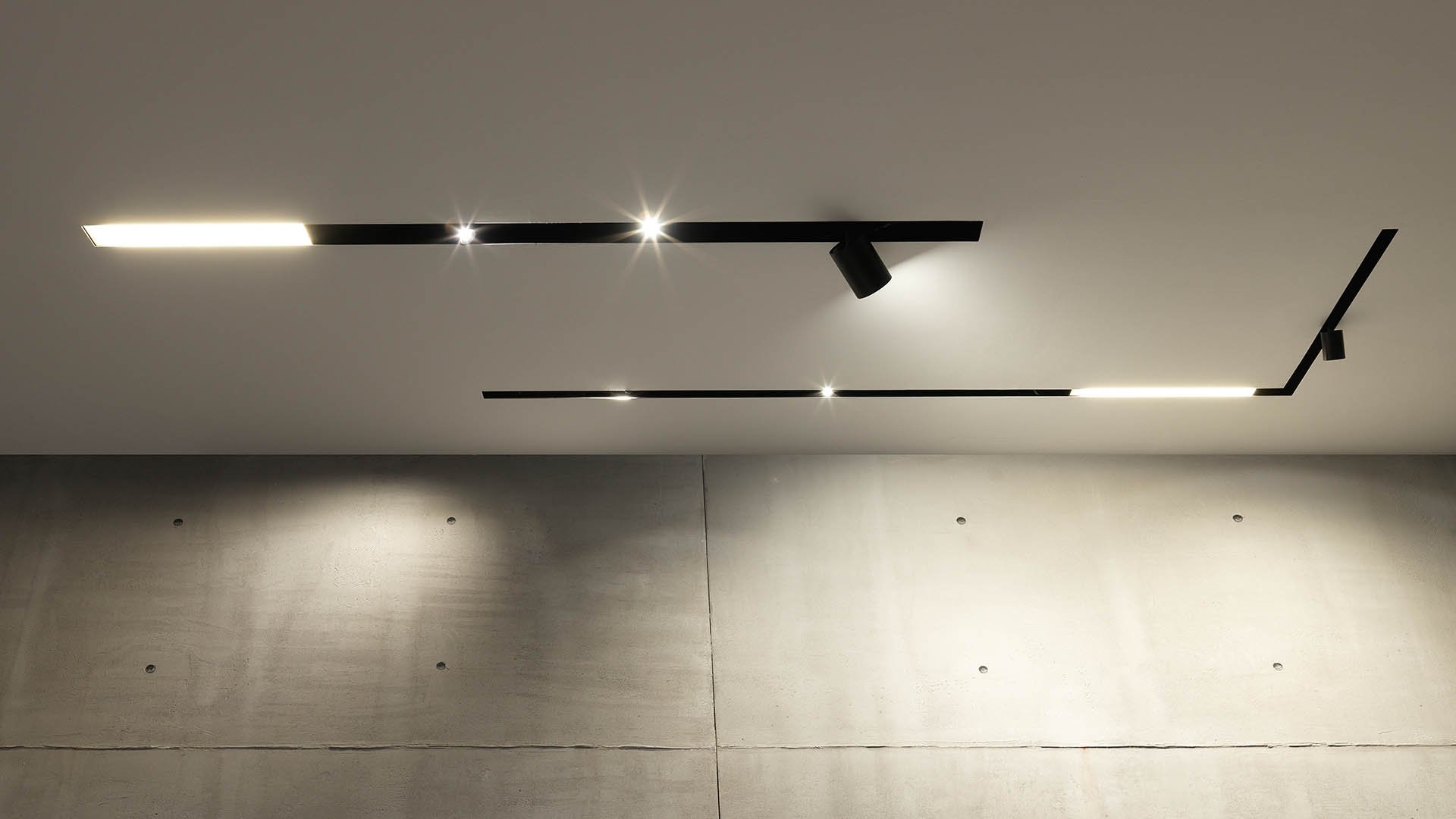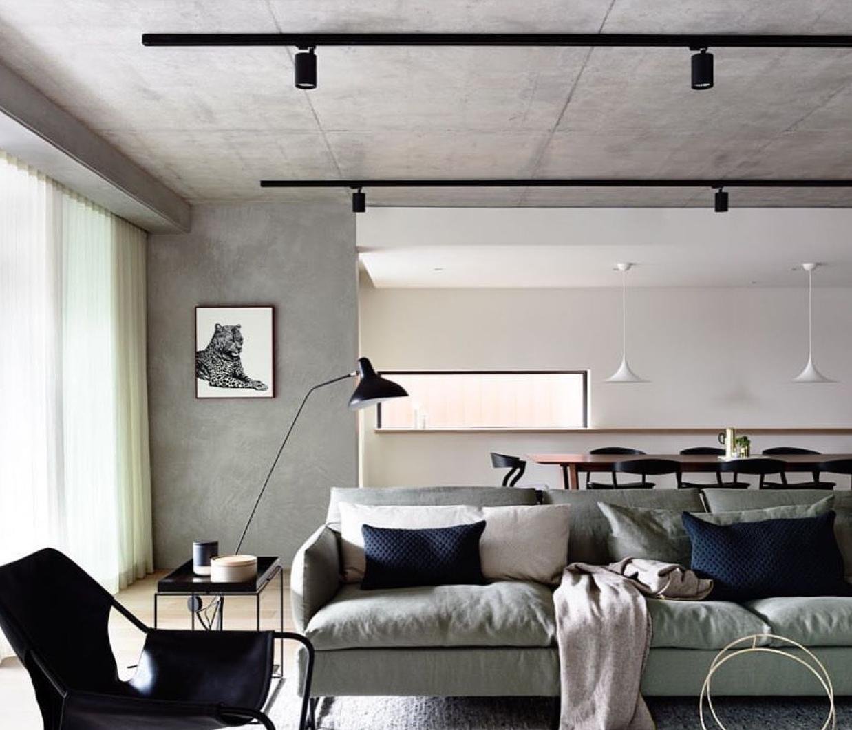 Черные трековые светильники в интерьере