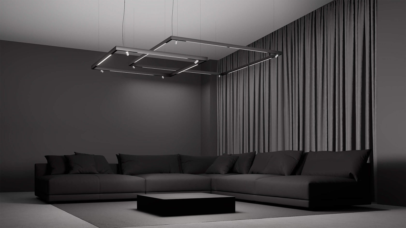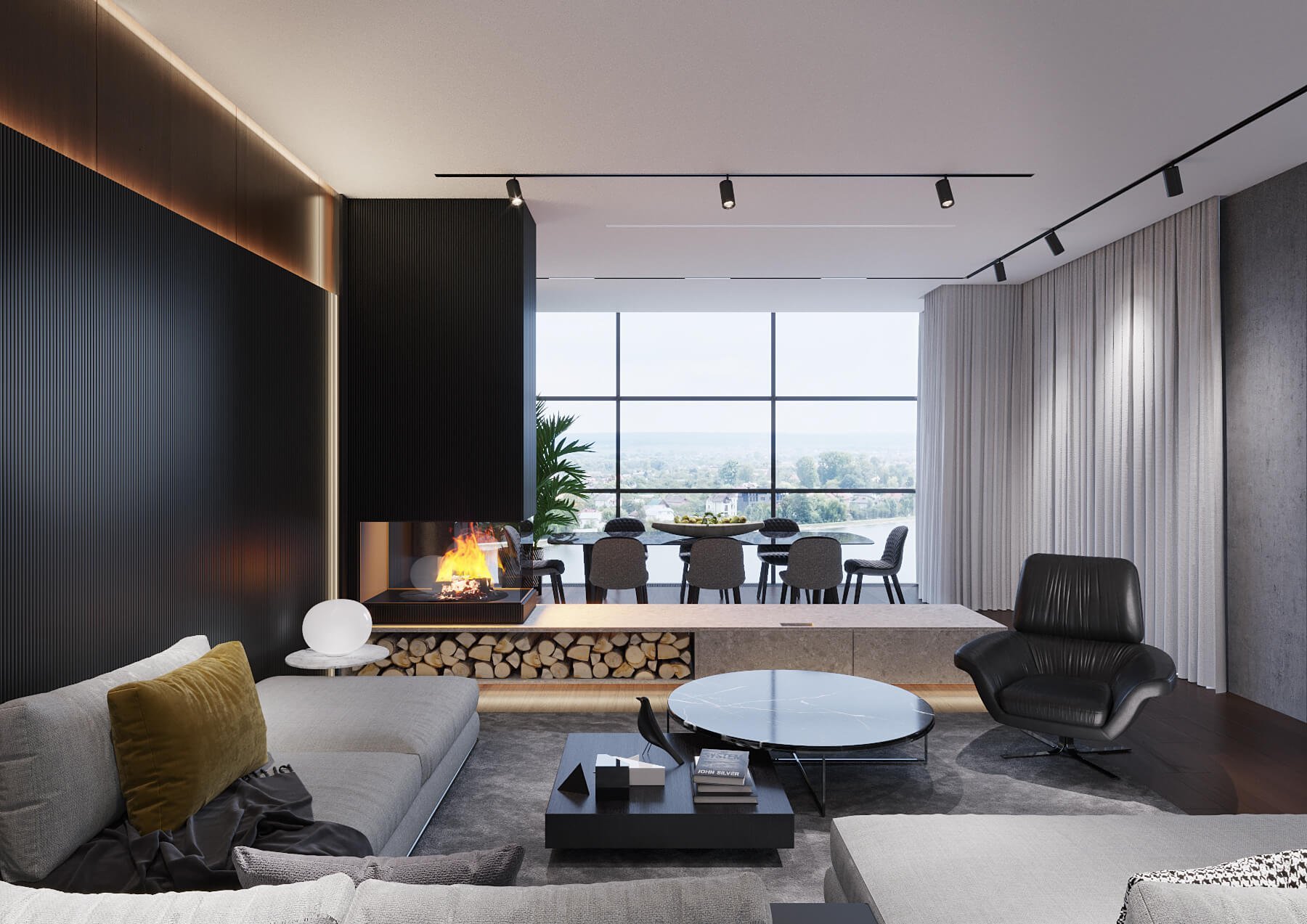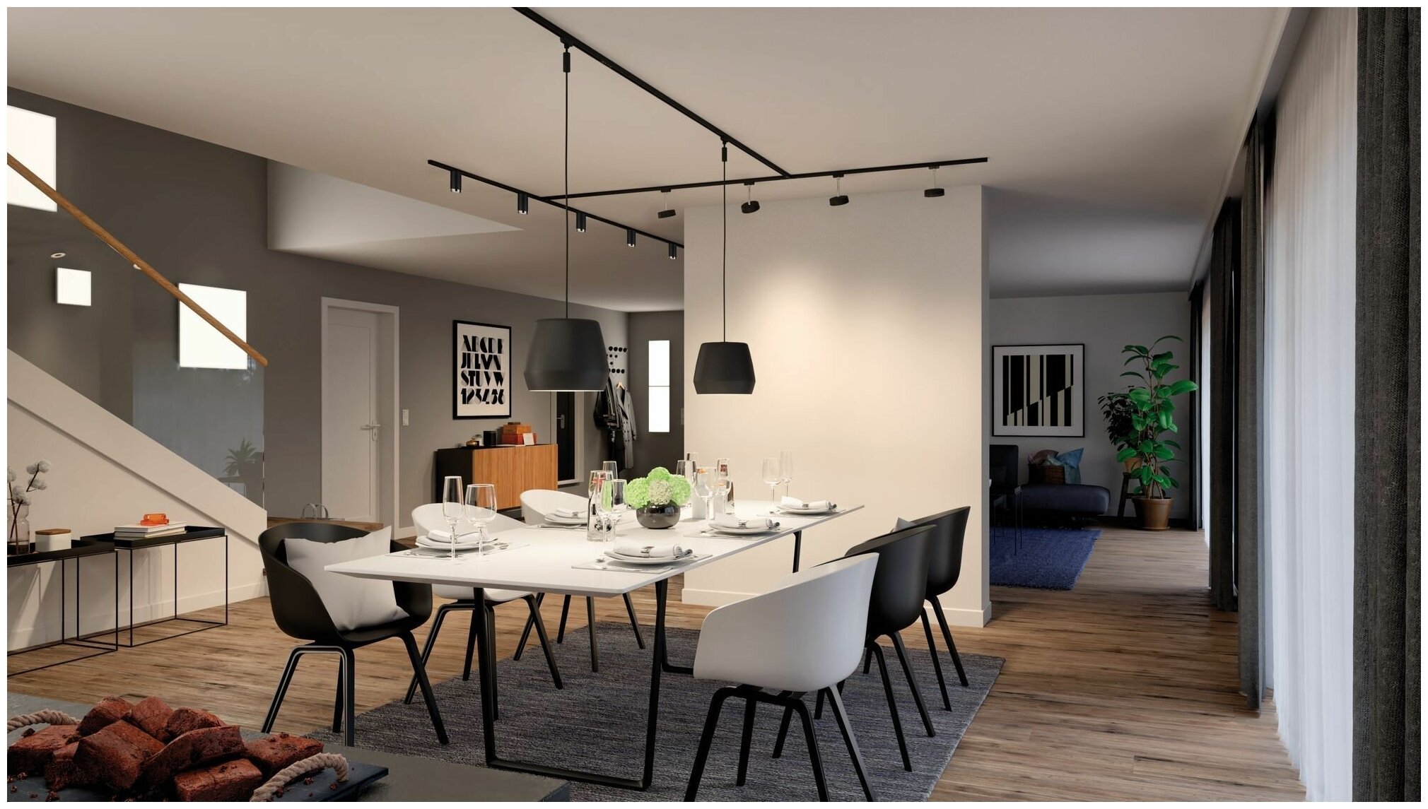 Черные трековые светильники в интерьере