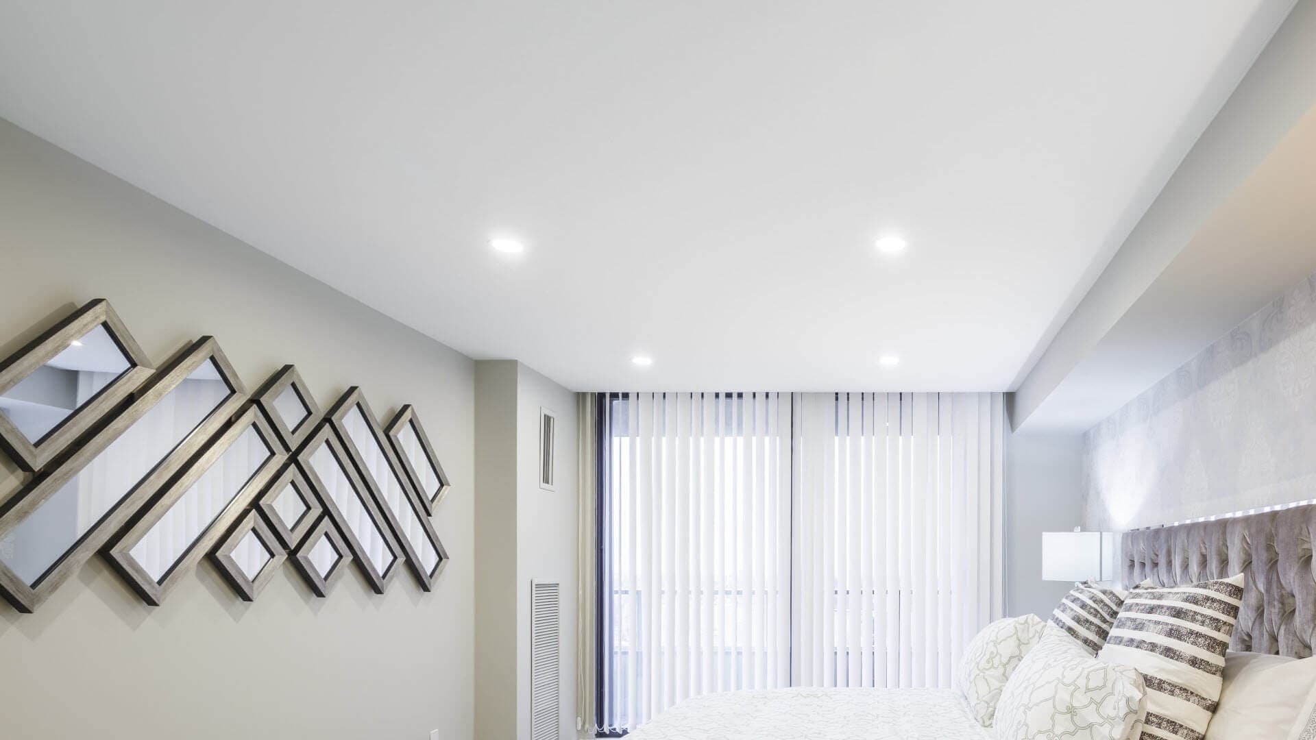 Трековые светильники в интерьере спальни