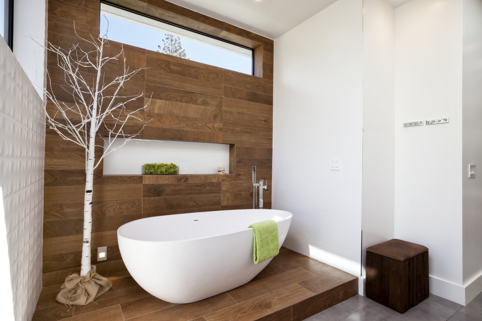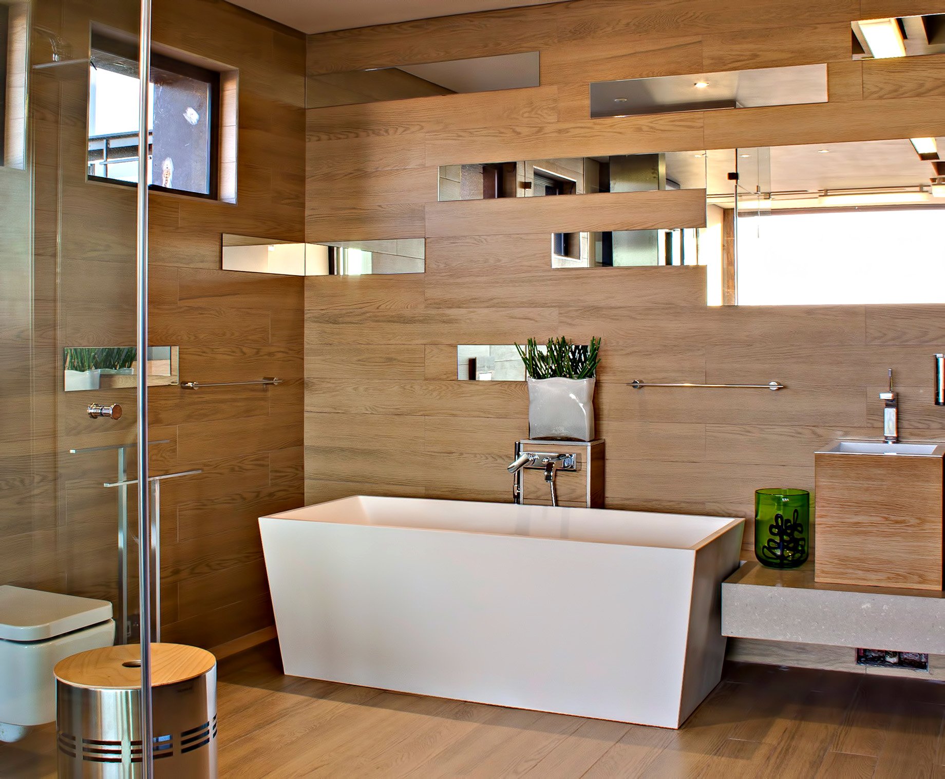 Дерево в интерьере ванной комнаты