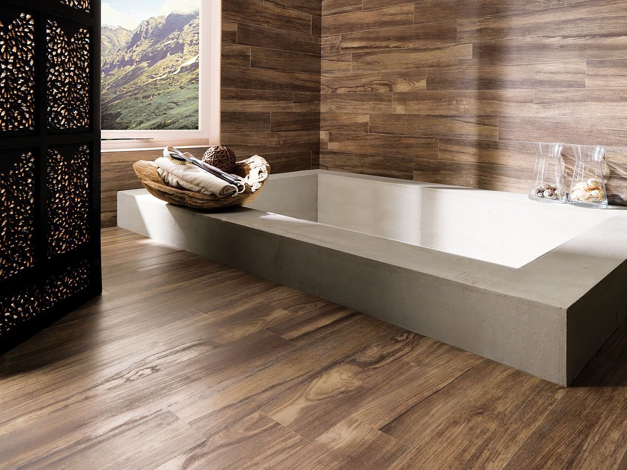 Плитка в ванную под дерево